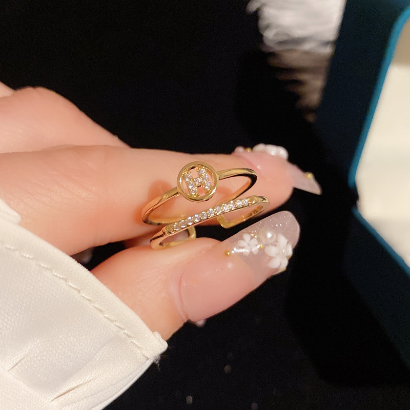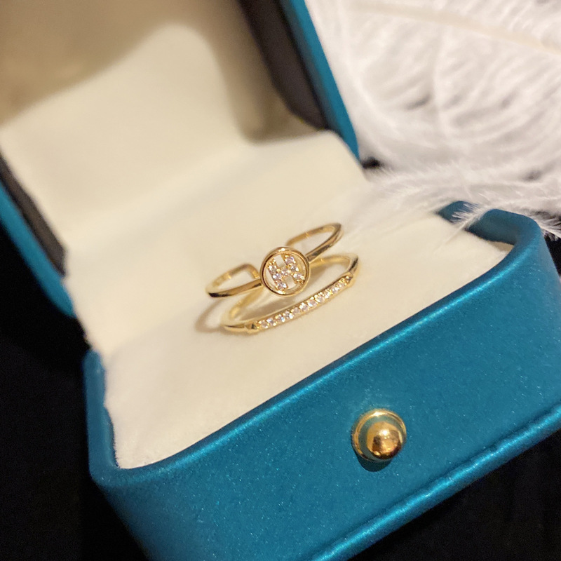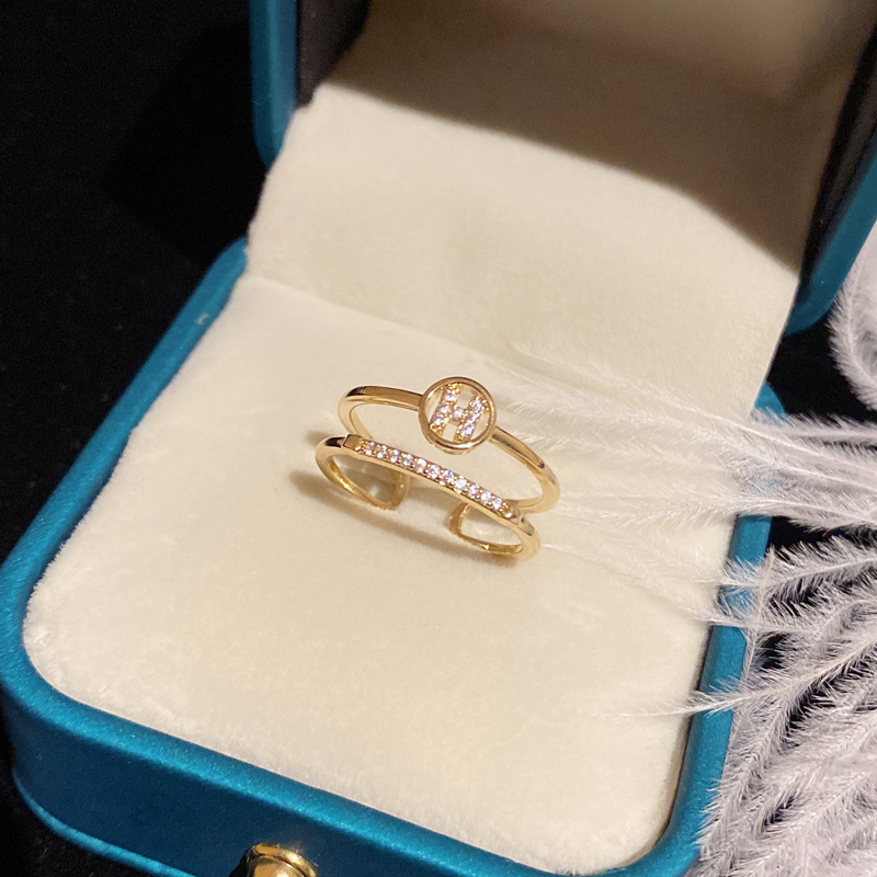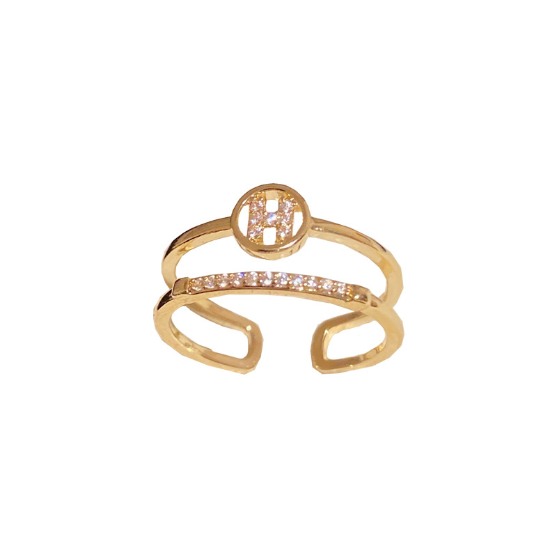 字母H双层开口戒