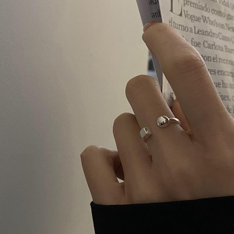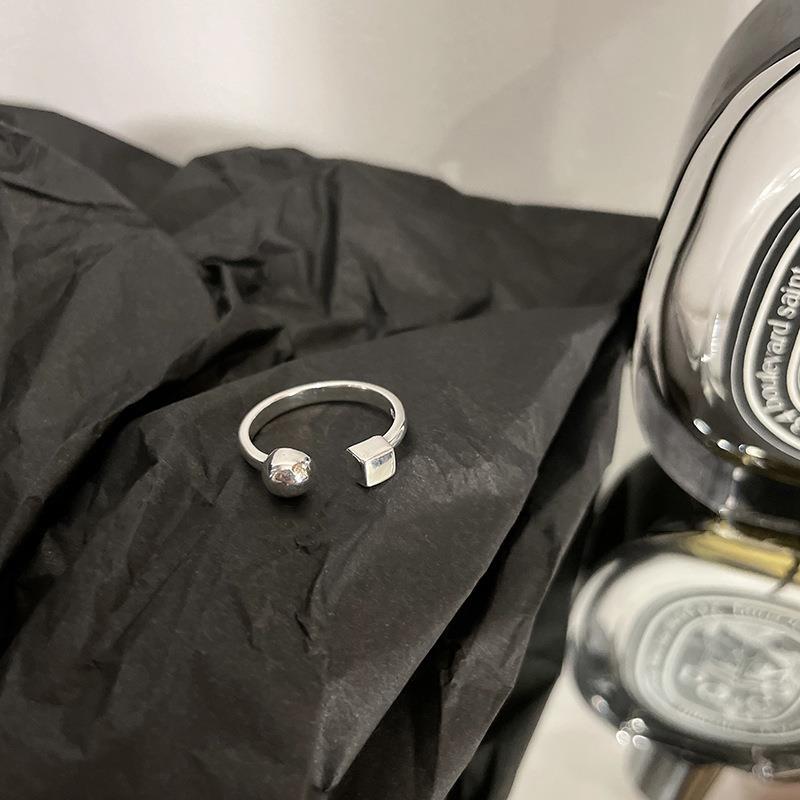 韩国正方形圆球几何戒指女轻奢小众设计高级感冷淡风简约食指戒潮
