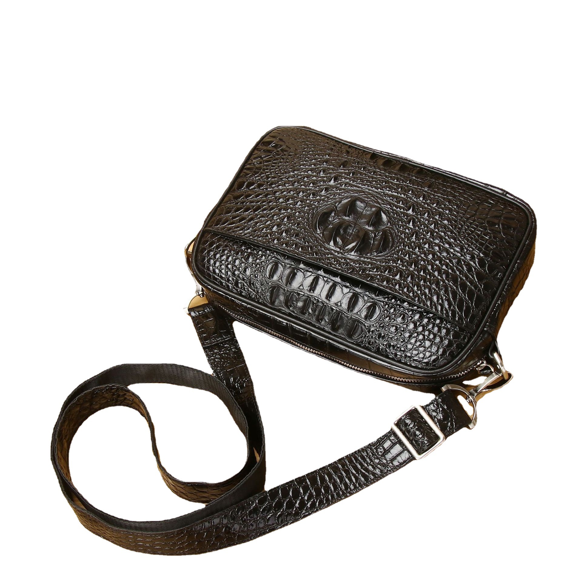新款鳄鱼纹小挎包男士真皮小背包单肩斜跨包横款时尚休闲男包