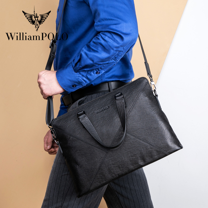 英皇保罗公文包男真皮大容量手拿牛皮包商务单肩斜挎包休闲手提包