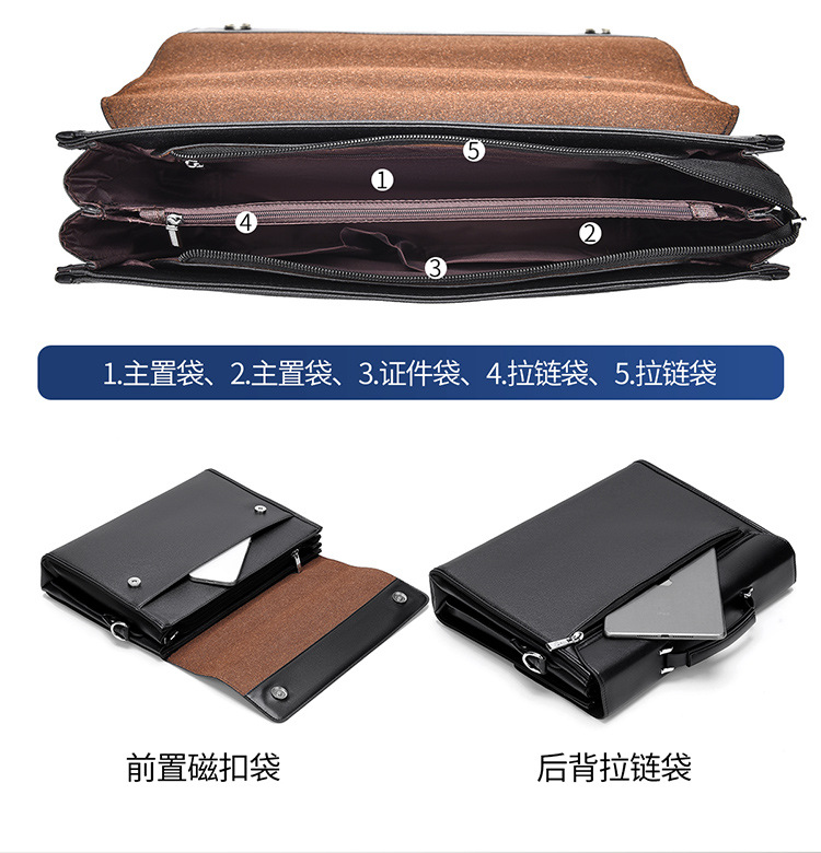 新款男士手提包商务男包横款通勤文件包多层大容量公文包