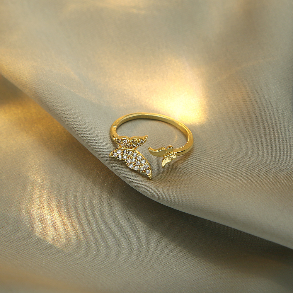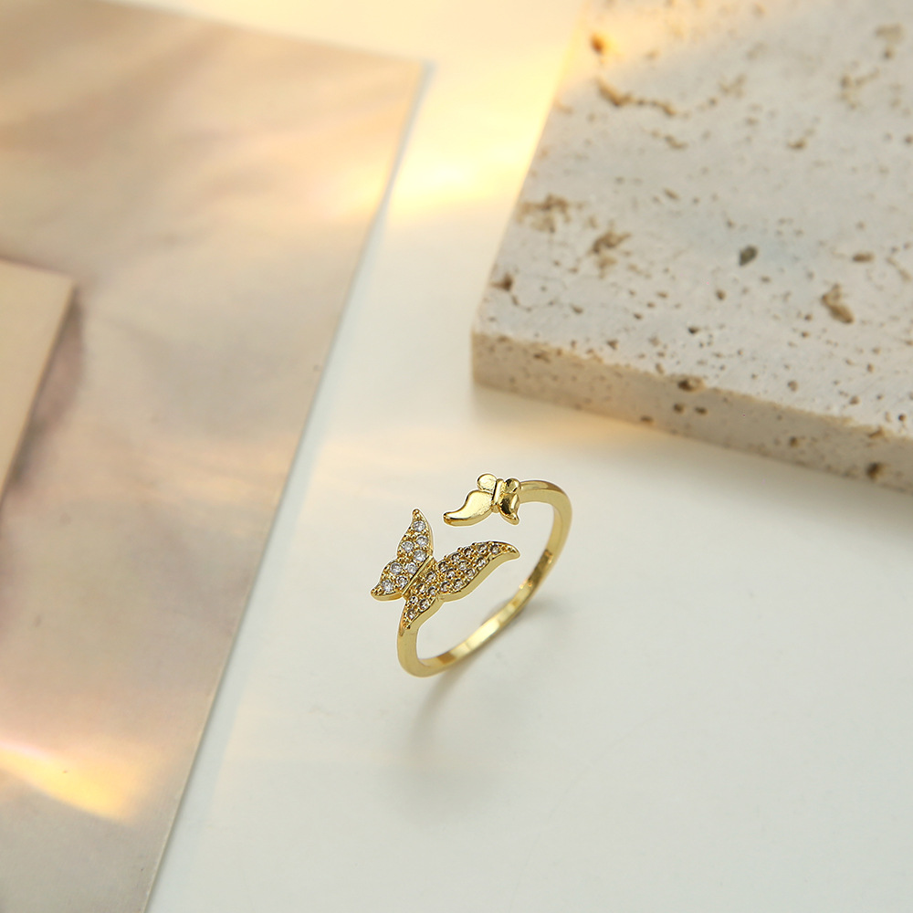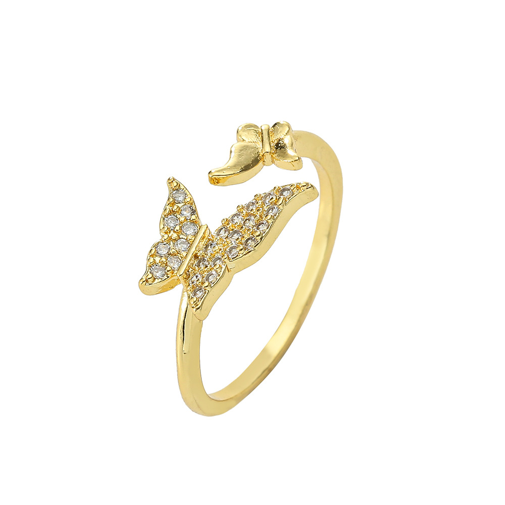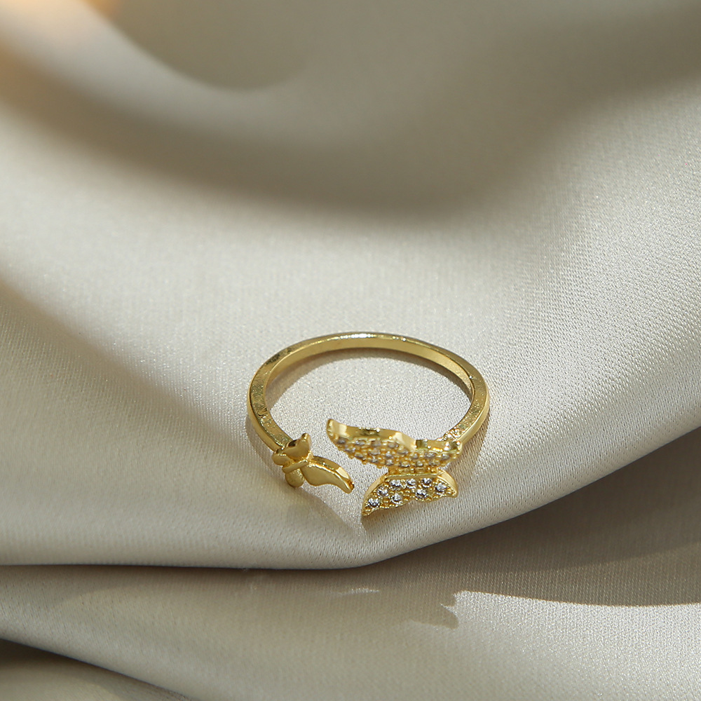18k镀金ins小蝴蝶开口戒指女小众高级感锆石指环网红气质轻奢尾戒