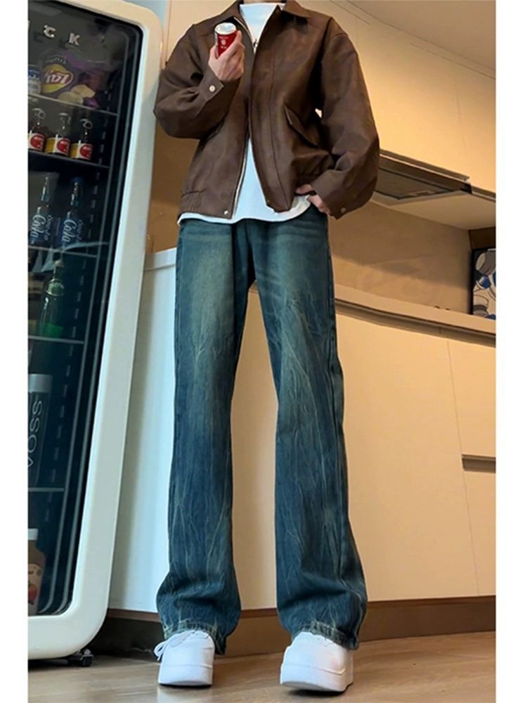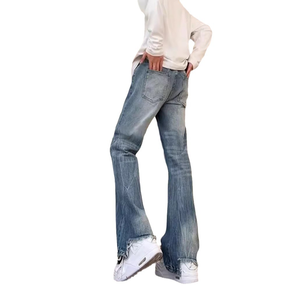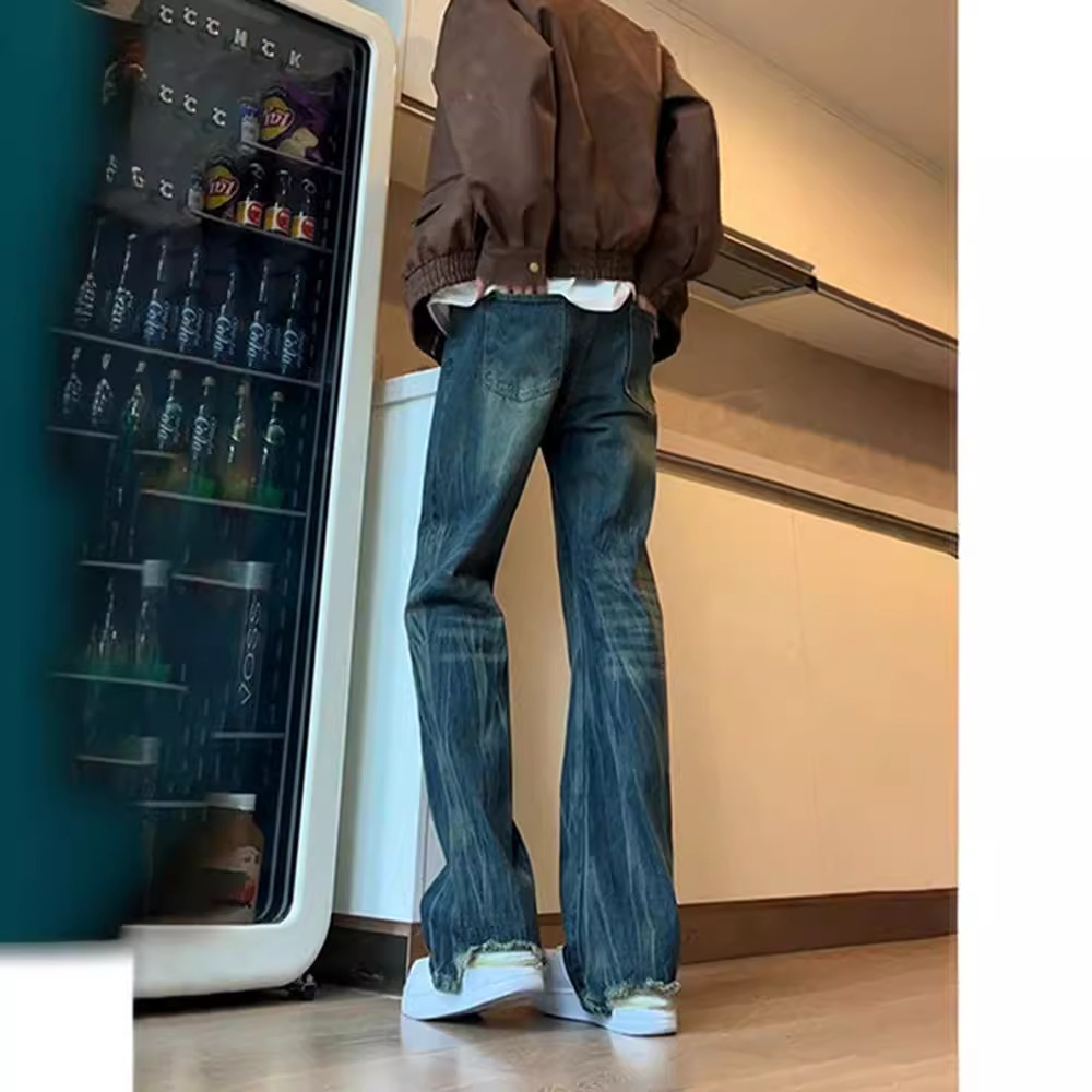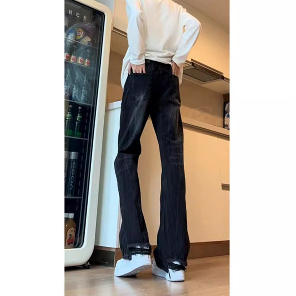 复古黑灰色竹节纹牛仔裤男款美式高街vibe裤子提档版型微喇直筒裤