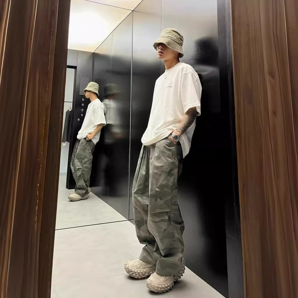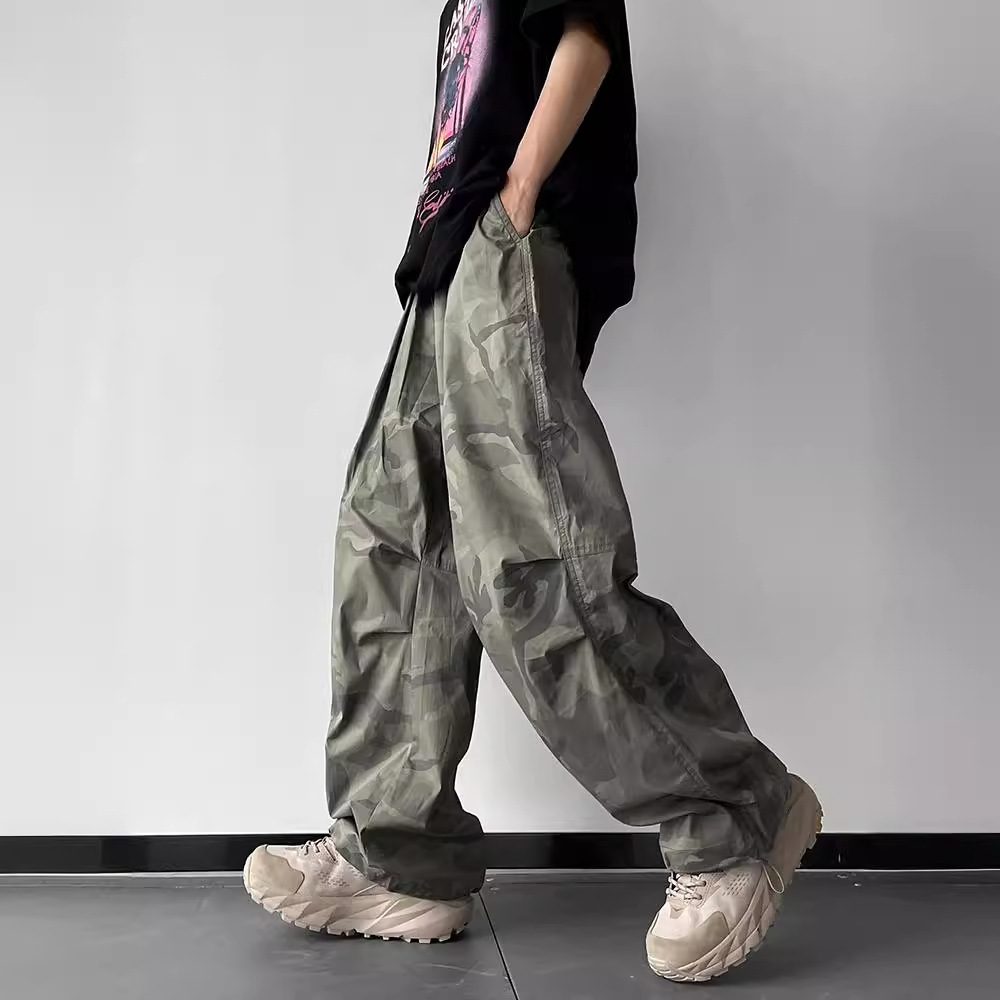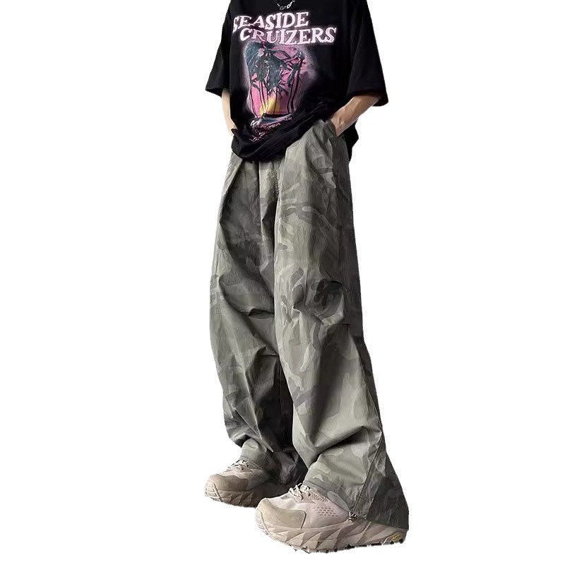尼龙速干迷彩伞兵裤男秋季新款美式潮牌宽松阔腿登山冲锋工装裤子