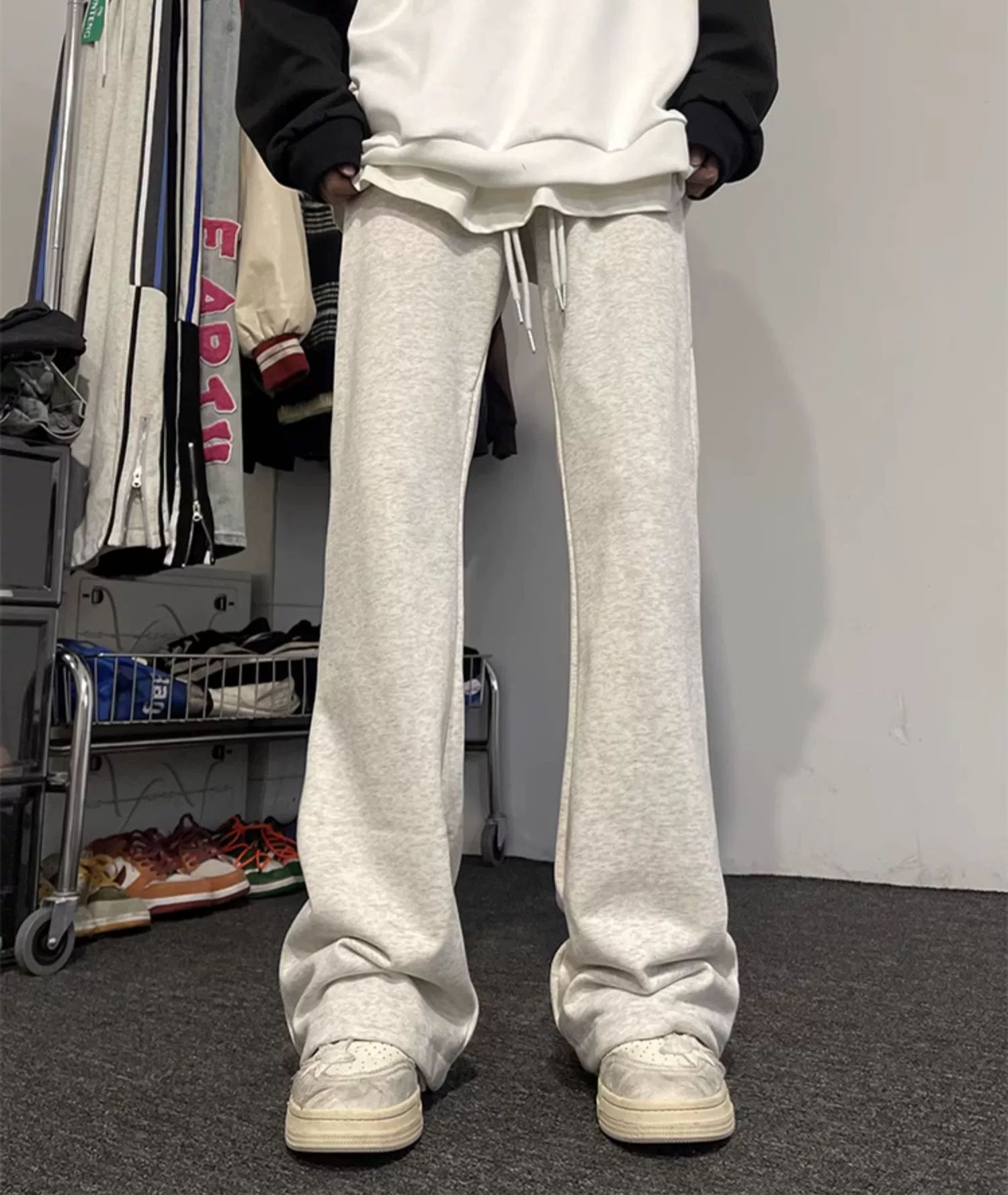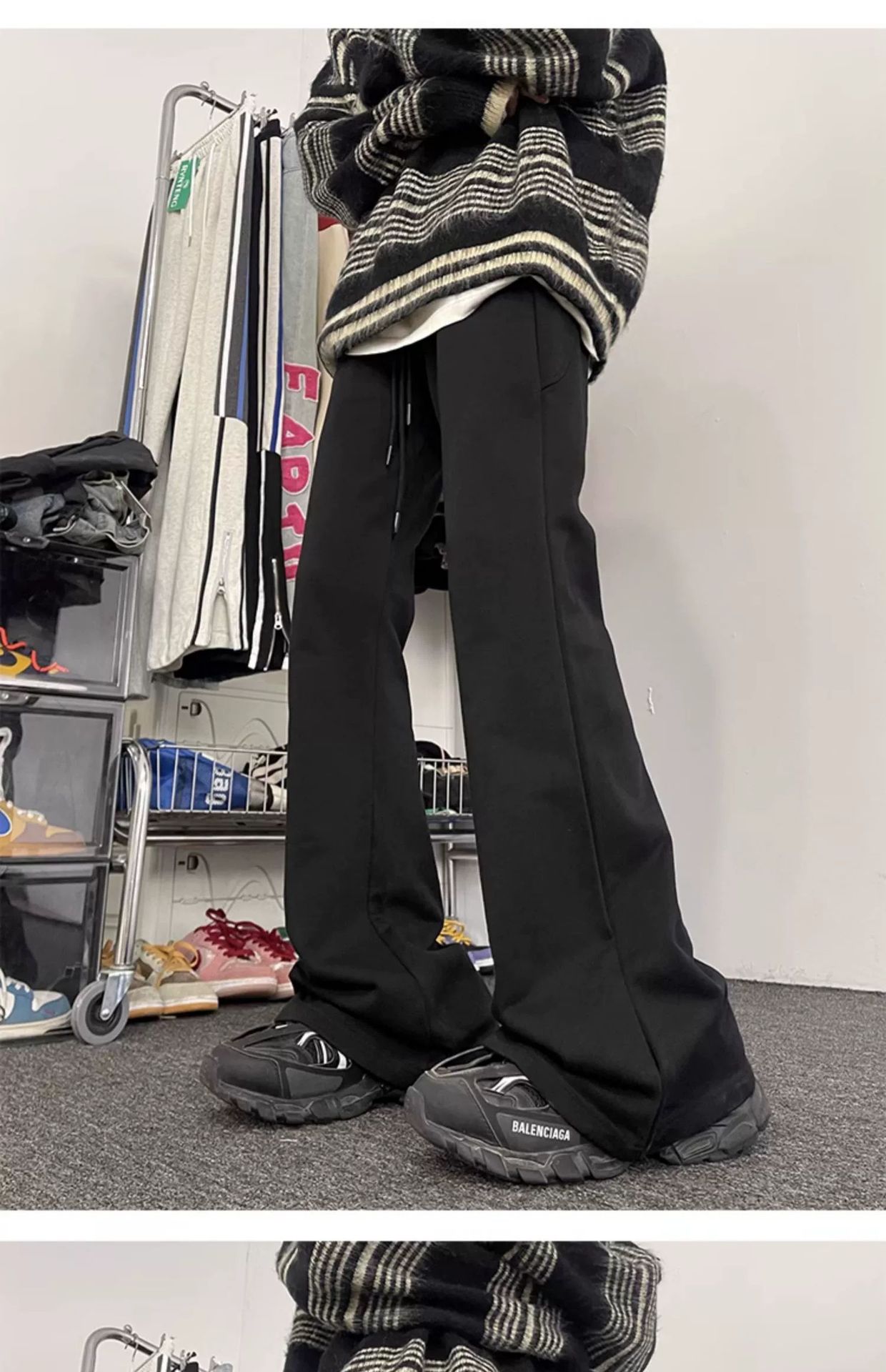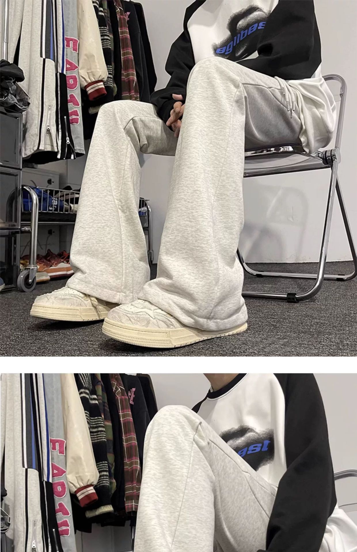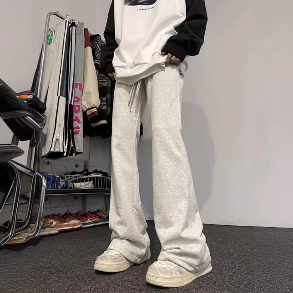 花灰色美式卫裤男春秋hiphop垂感微喇裤子加长款高个子直筒运动裤