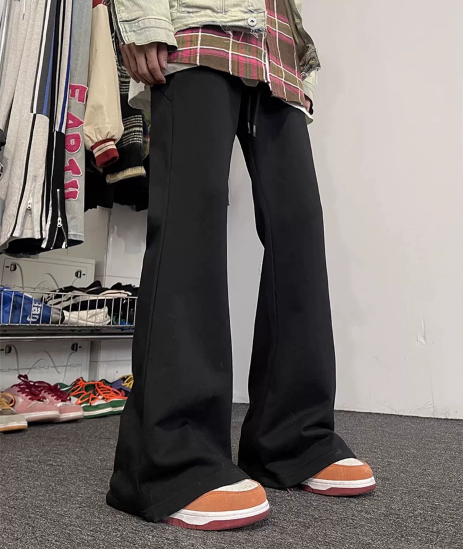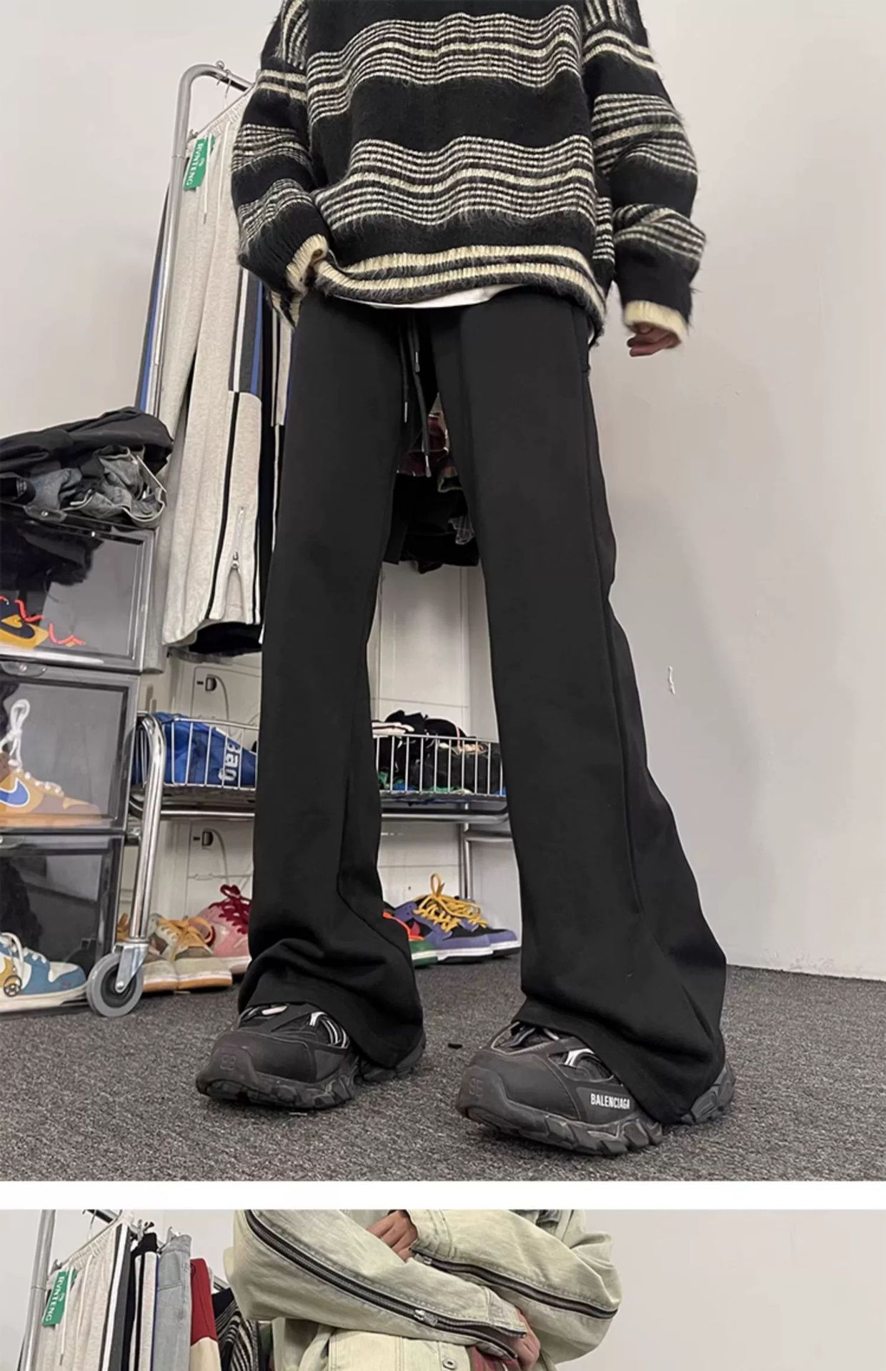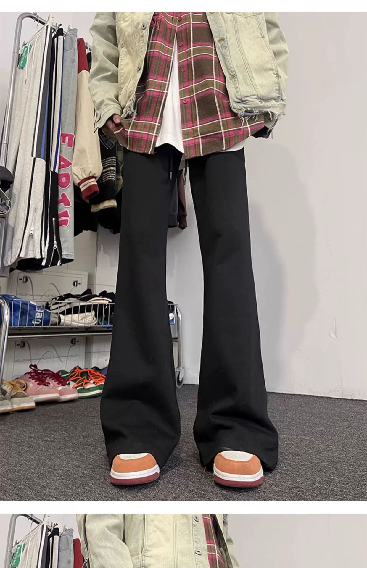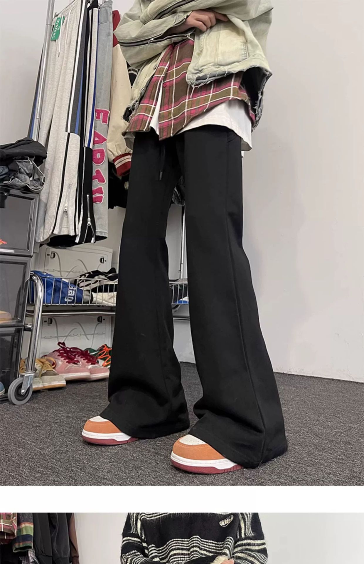 花灰色美式卫裤男春秋hiphop垂感微喇裤子加长款高个子直筒运动裤