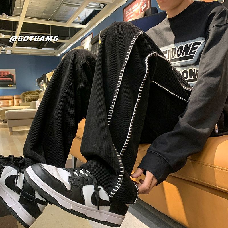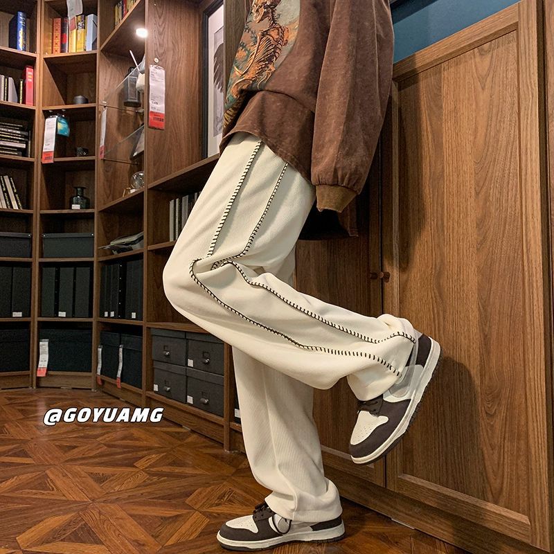 高级感痞帅裤子男春季男装设计感小众休闲裤宽松直筒潮牌拖地长裤
