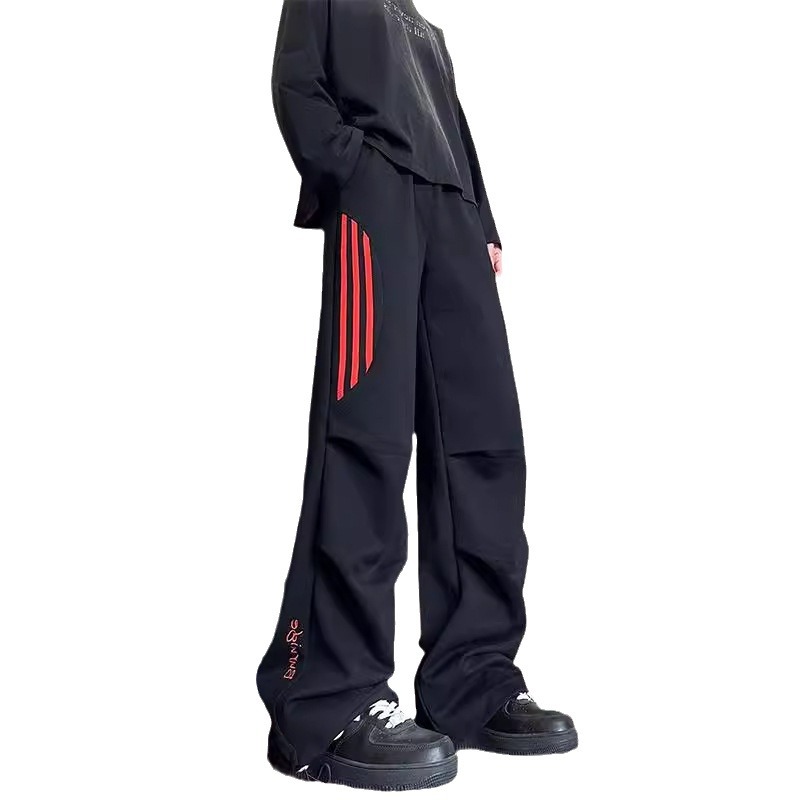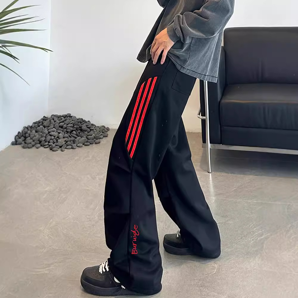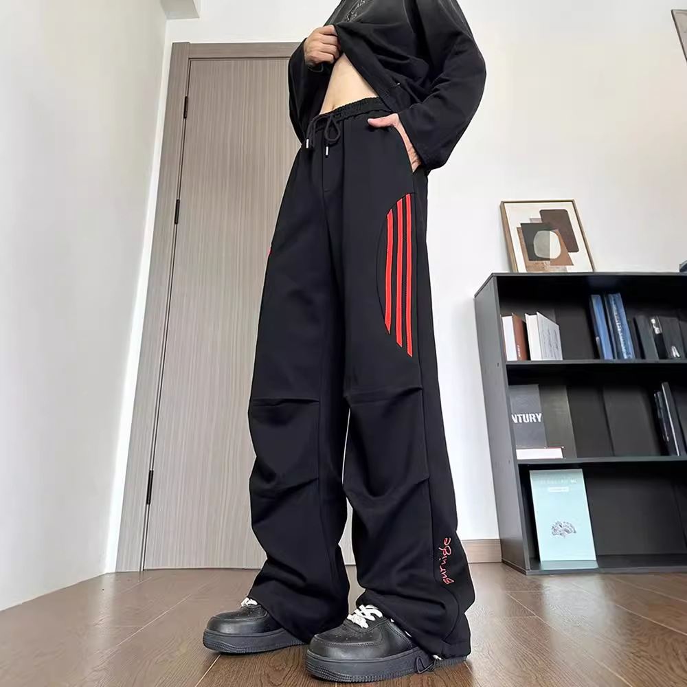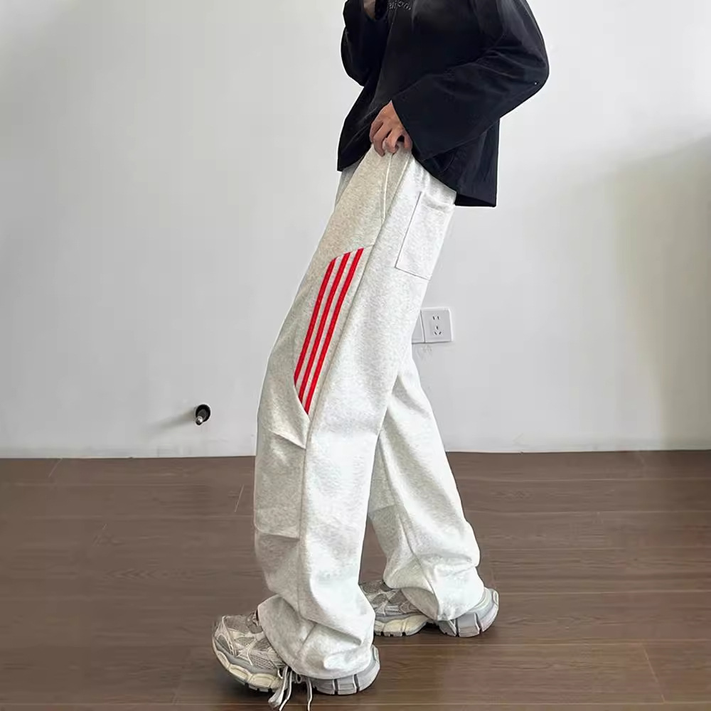 美式白花灰阔腿卫裤男士秋季高街休闲长裤条纹春秋款直筒运动裤子