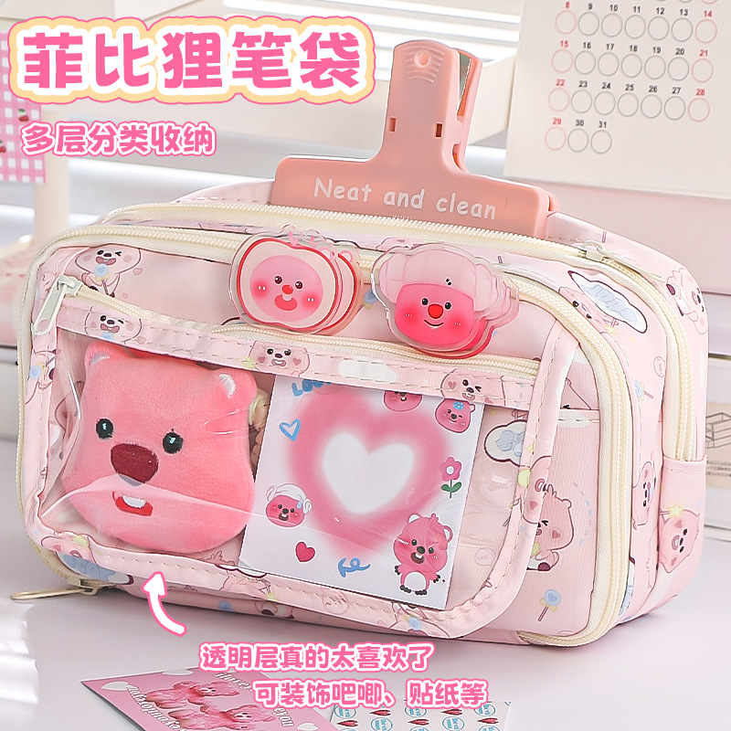 小海狸透明笔袋大容量可爱笔袋初中生高颜值中小学生文具袋高颜值