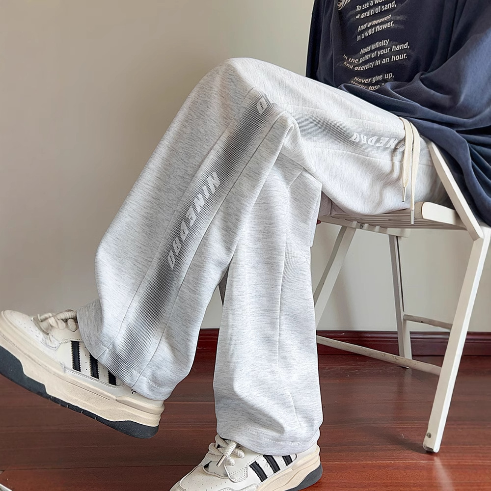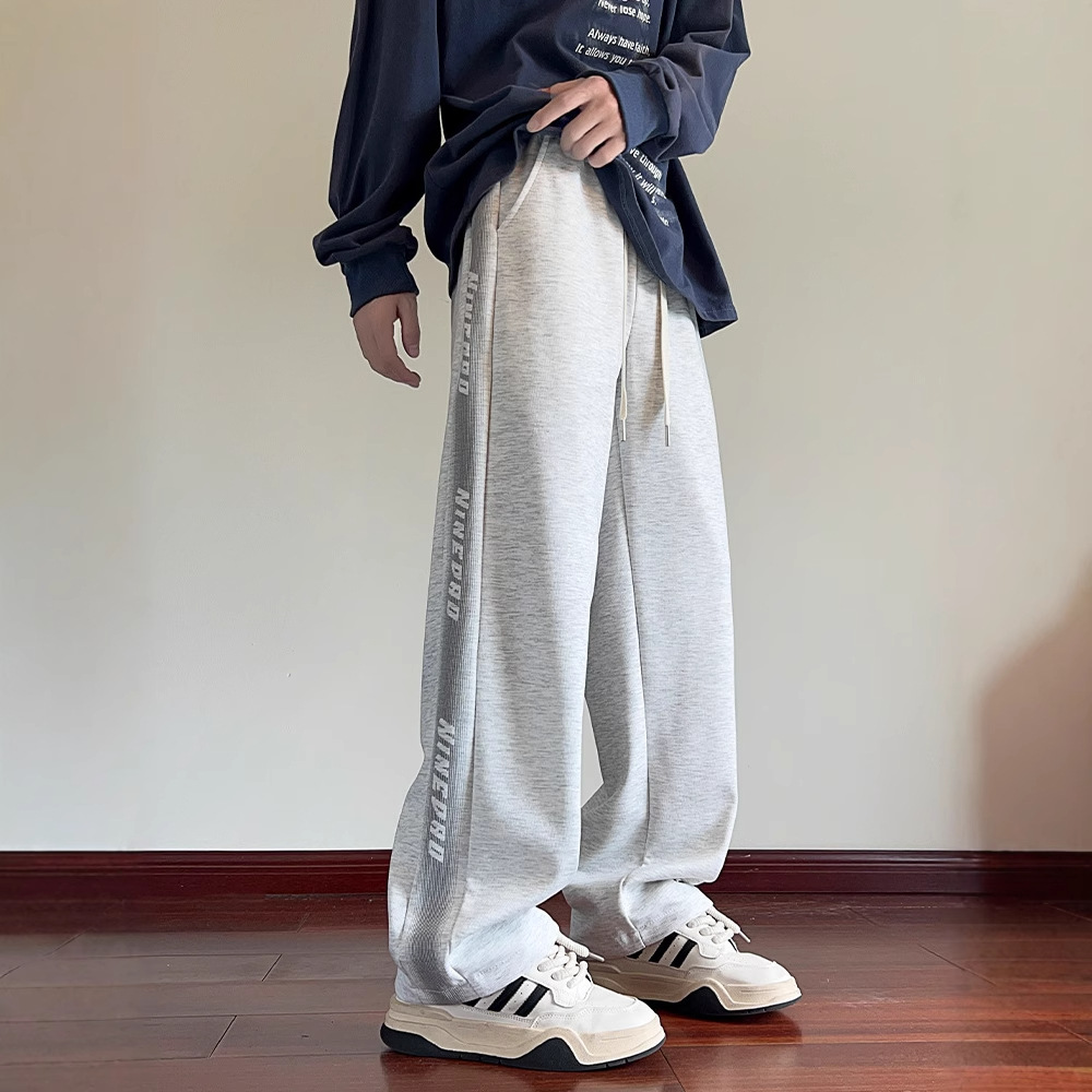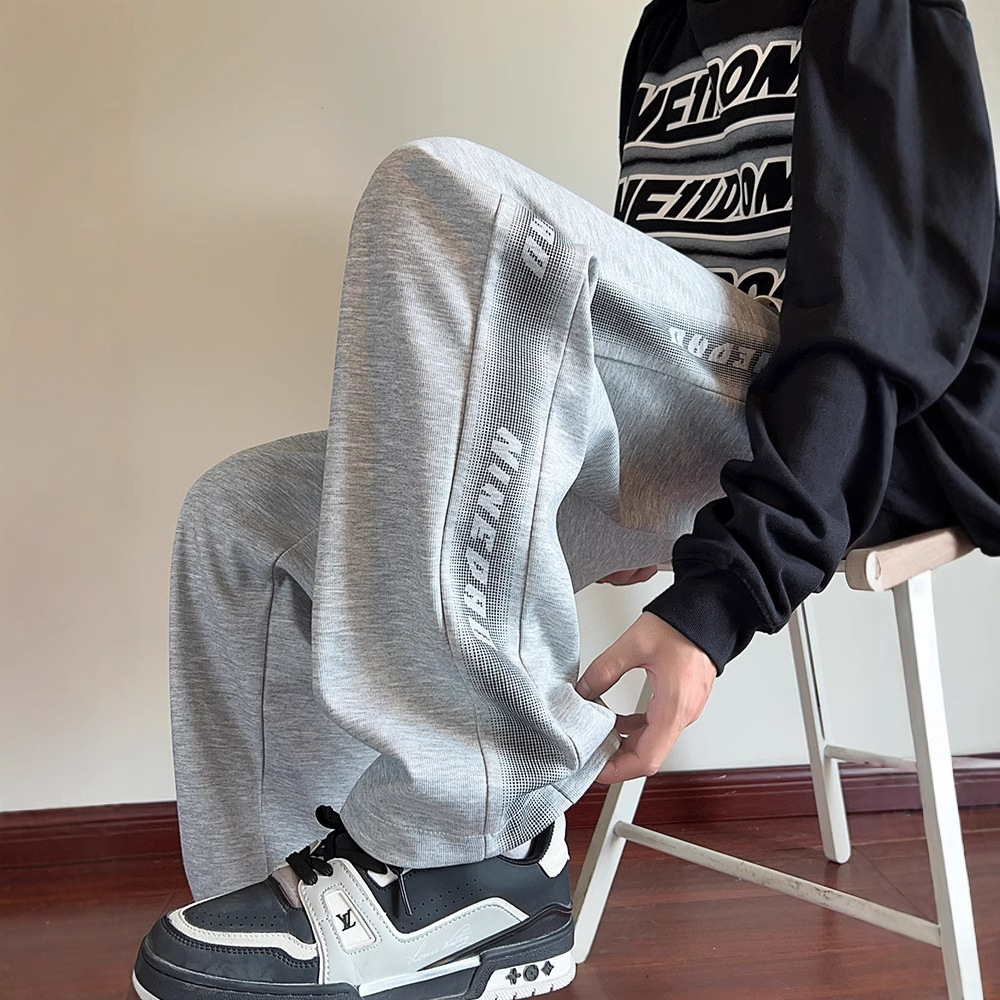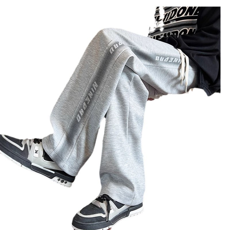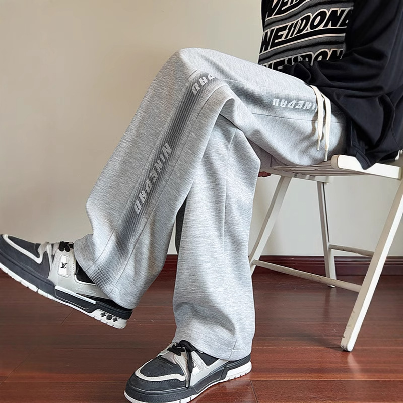 美式灰色卫裤男士春秋冬季新款潮牌休闲裤子宽松直筒运动长裤