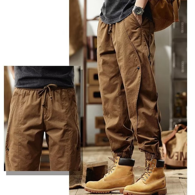 工装裤男款秋季美式复古束脚裤男士阔腿户外重磅休闲裤子