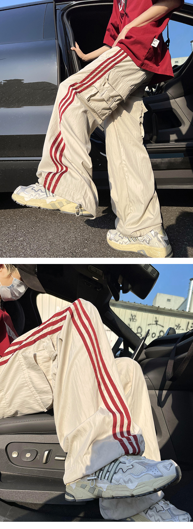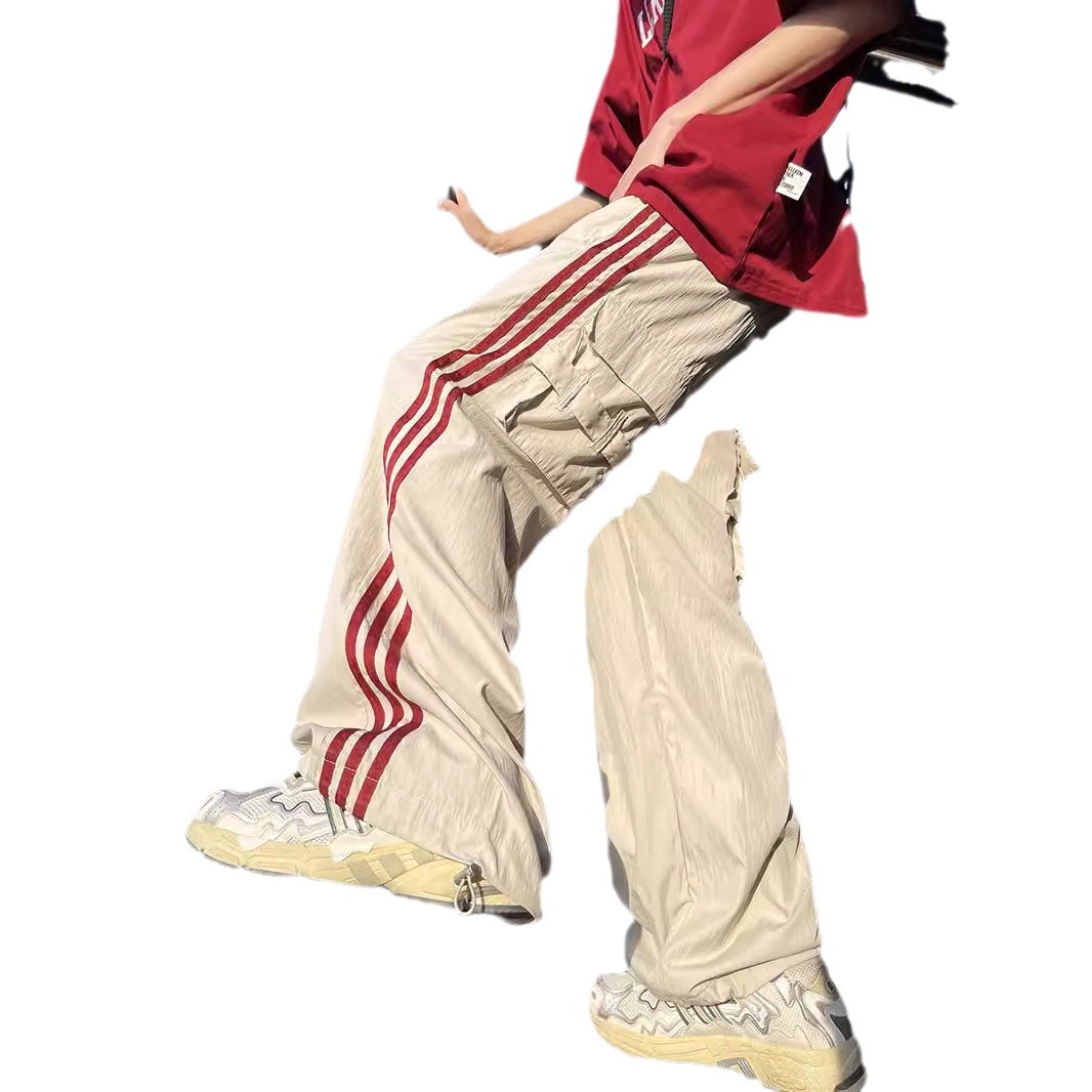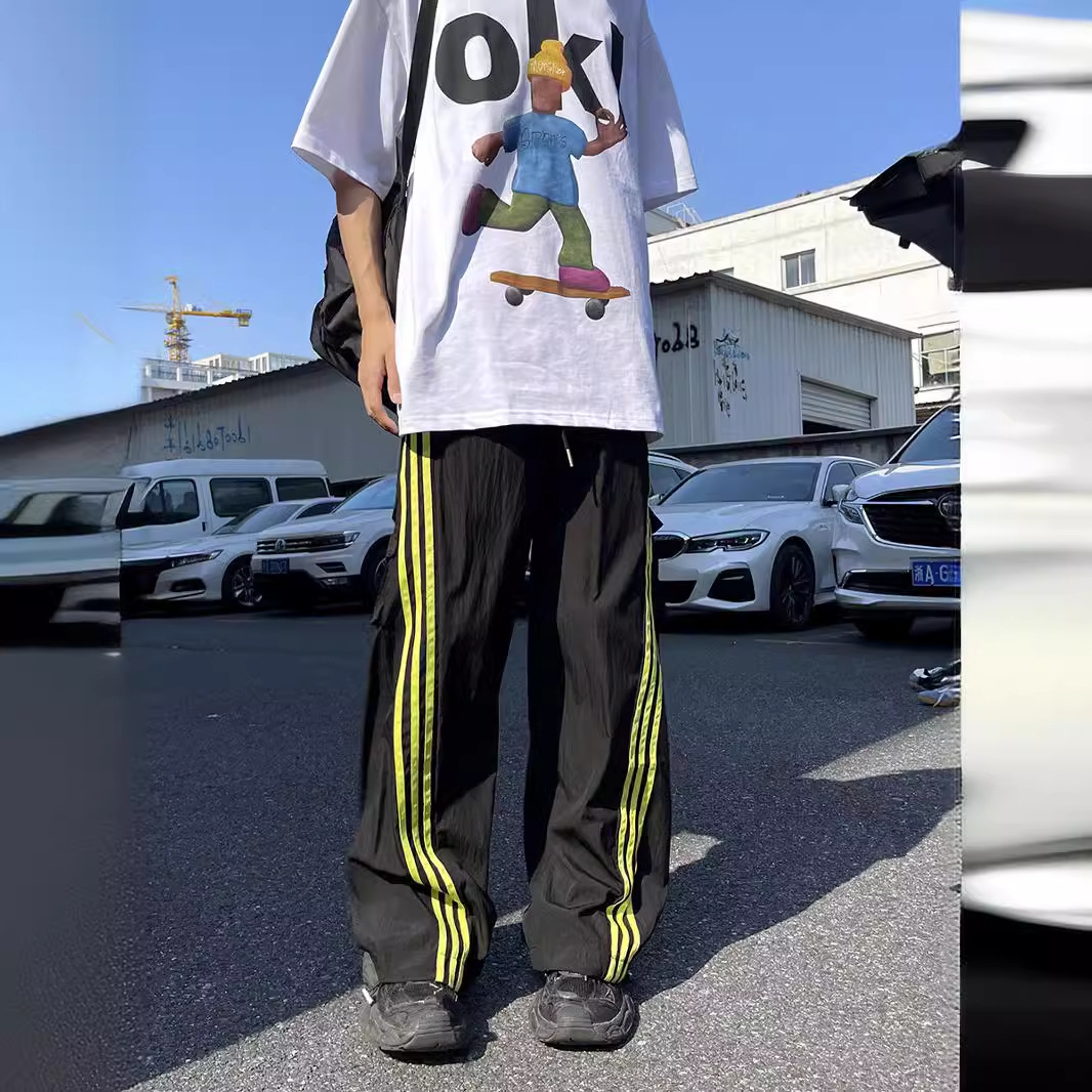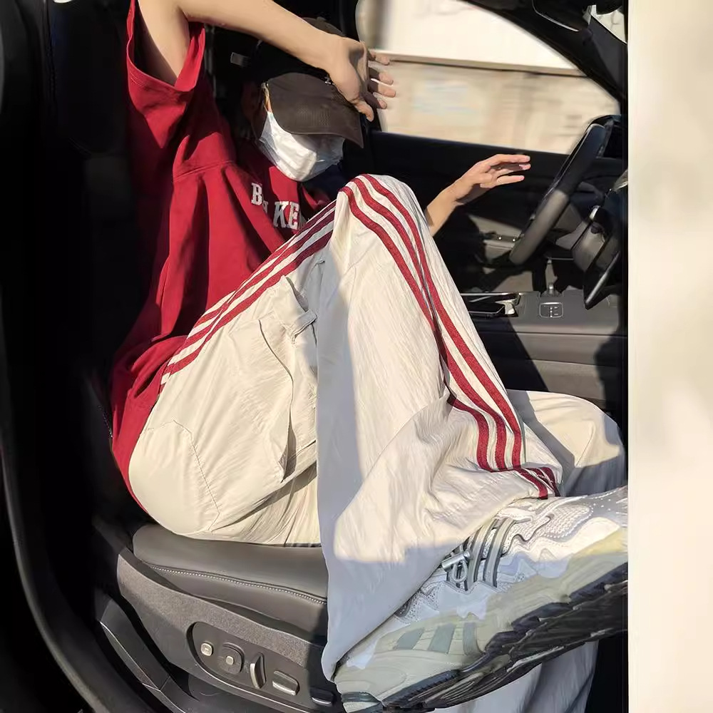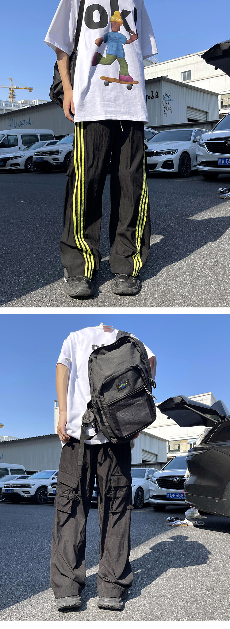 美式校园风休闲裤男夏季薄款潮牌青少年宽松直筒阔腿百搭冲锋裤子