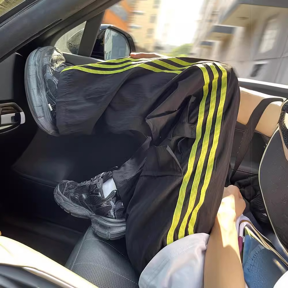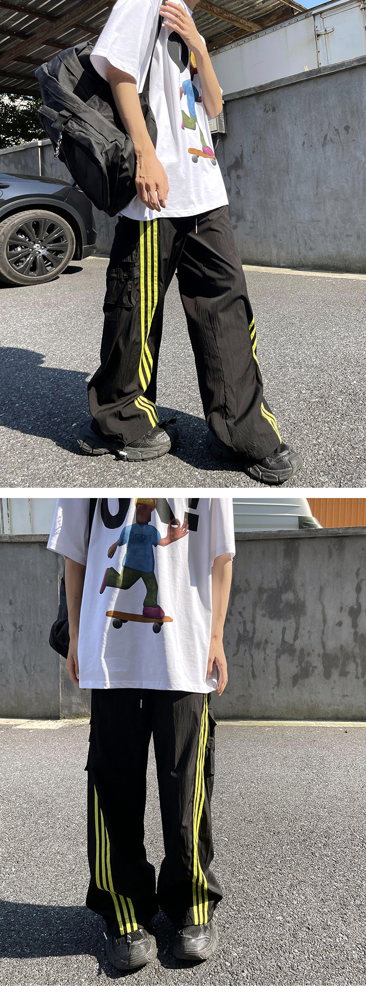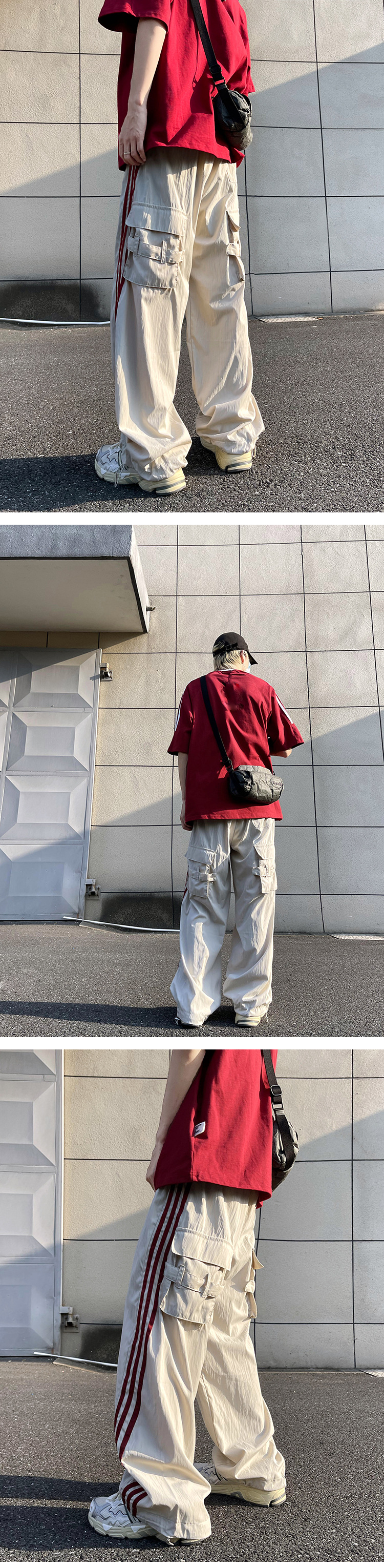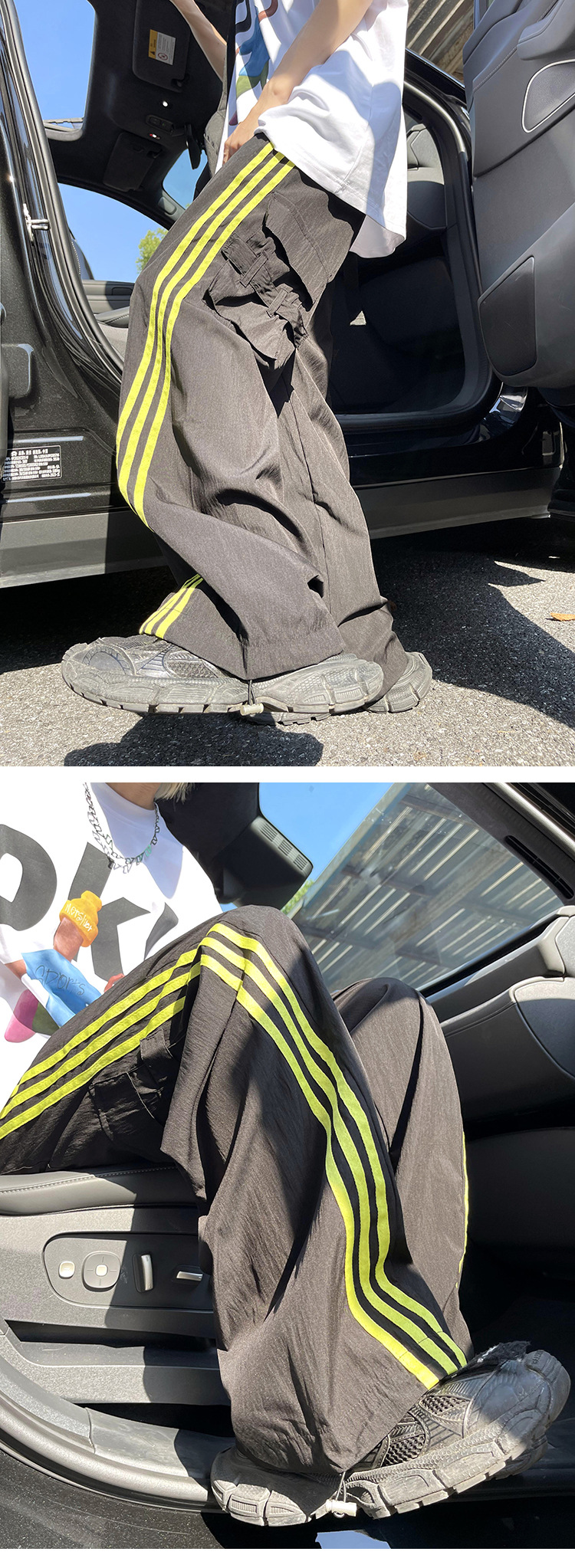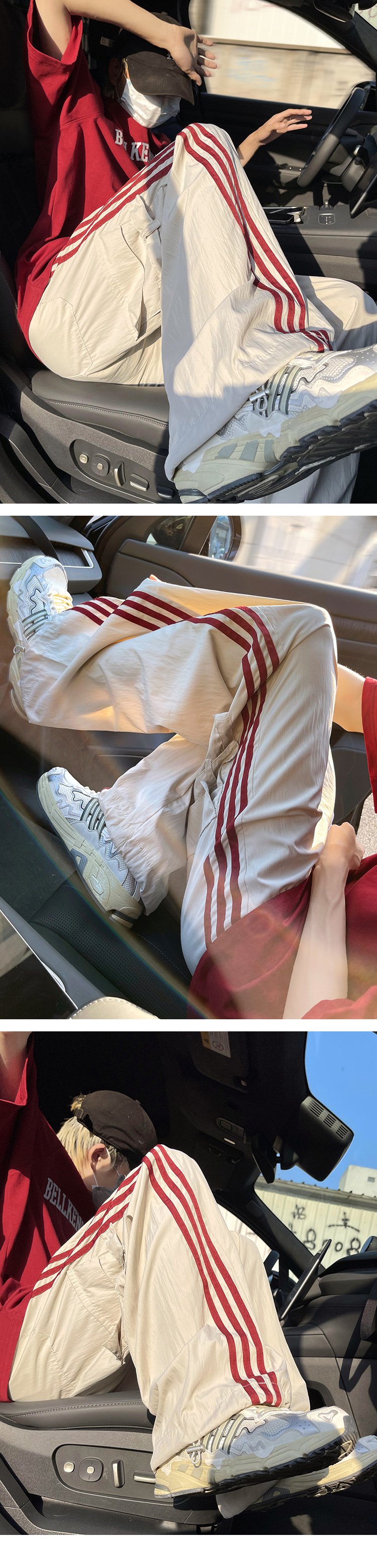 美式校园风休闲裤男夏季薄款潮牌青少年宽松直筒阔腿百搭冲锋裤子