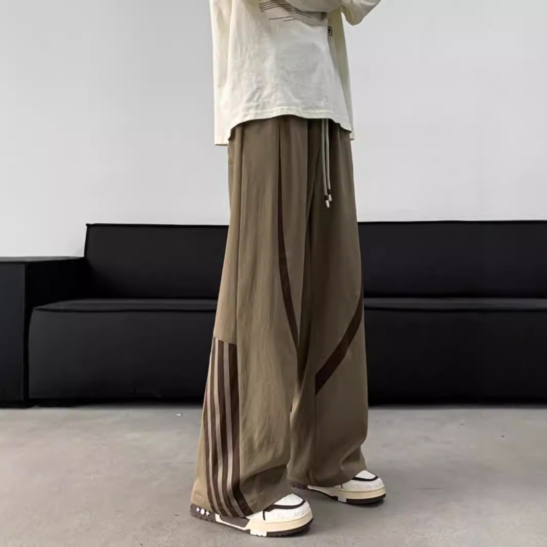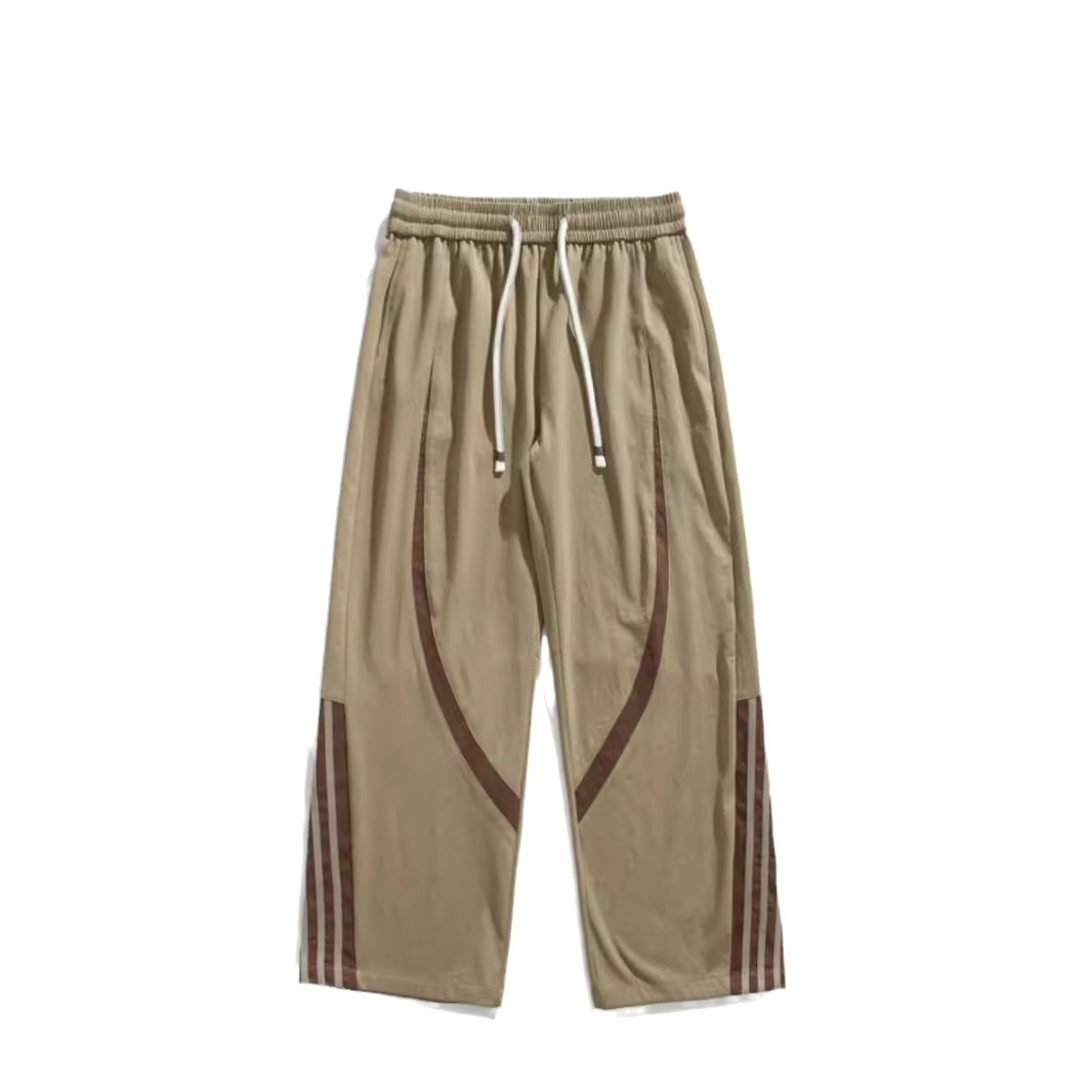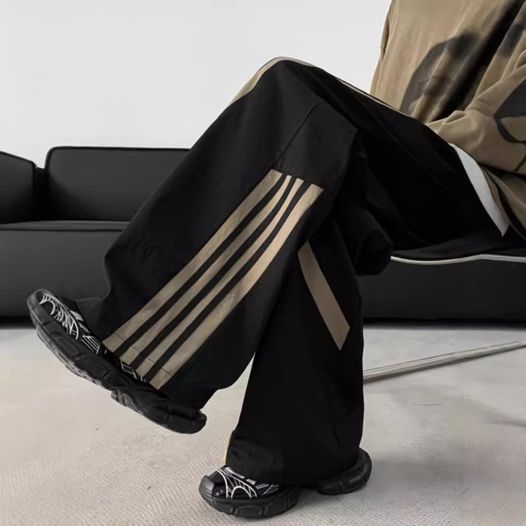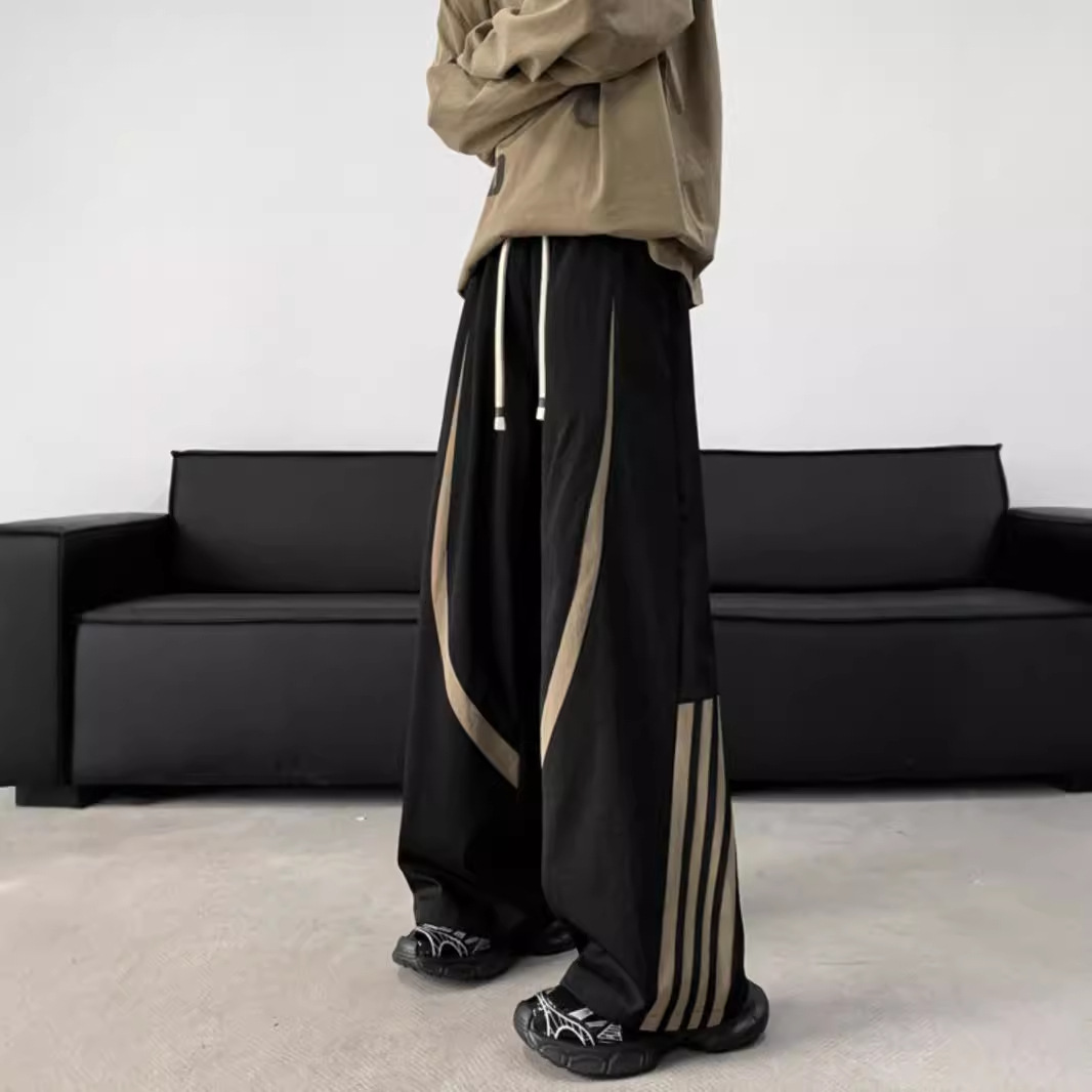 条纹运动休闲裤男秋季新款宽松直筒阔腿显瘦学生百搭潮流拖地裤子
