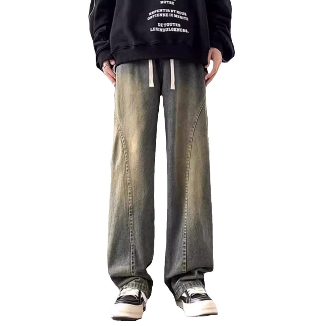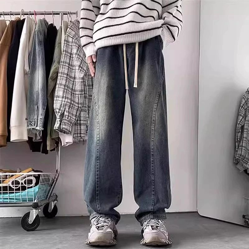 MYQ复古水洗牛仔裤男秋季宽松cleanfit阔腿长裤韩版潮流直筒裤