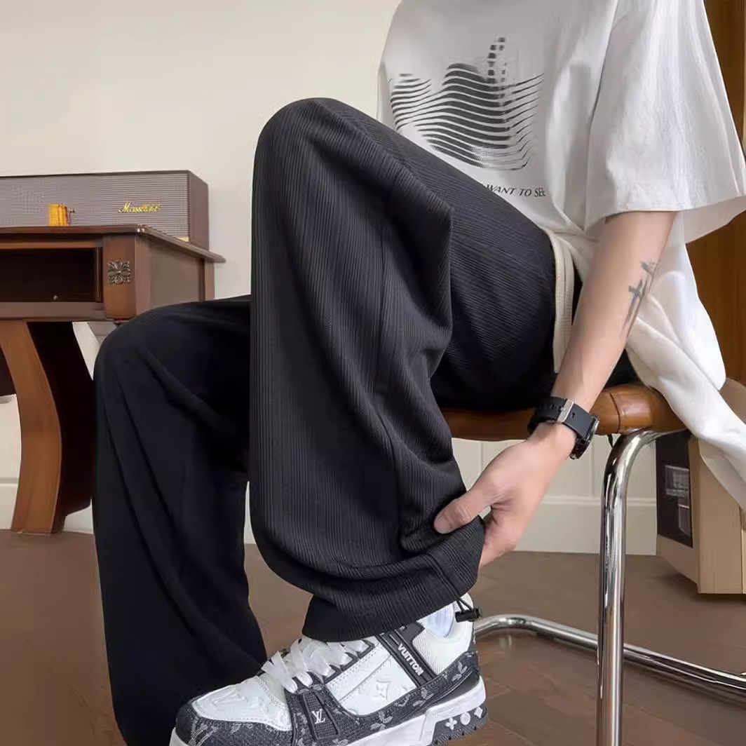 垂感冰丝裤子男夏季薄款大码休闲长裤直筒百搭潮流痞帅宽松阔腿裤