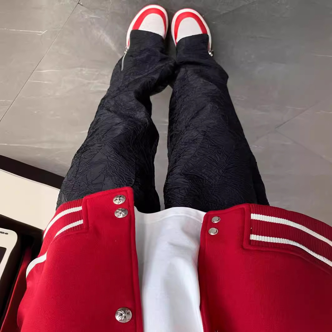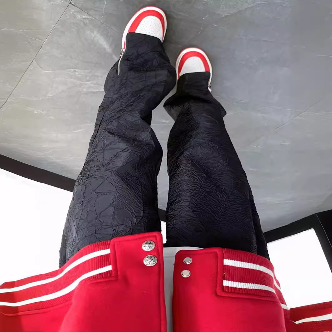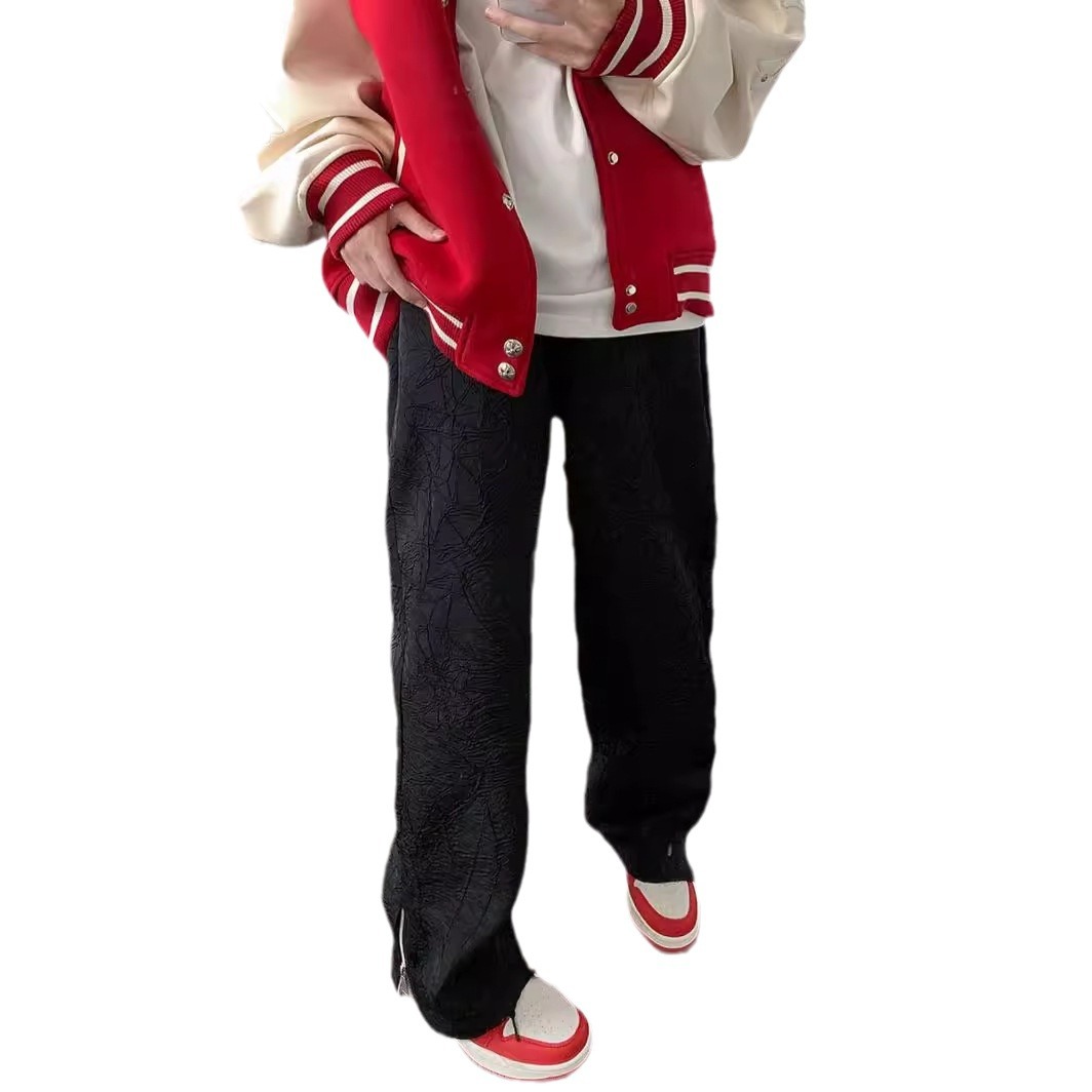 cleanfit裤子男美式高街夏季褶皱设计感尼龙冲锋裤拉链开叉微喇裤
