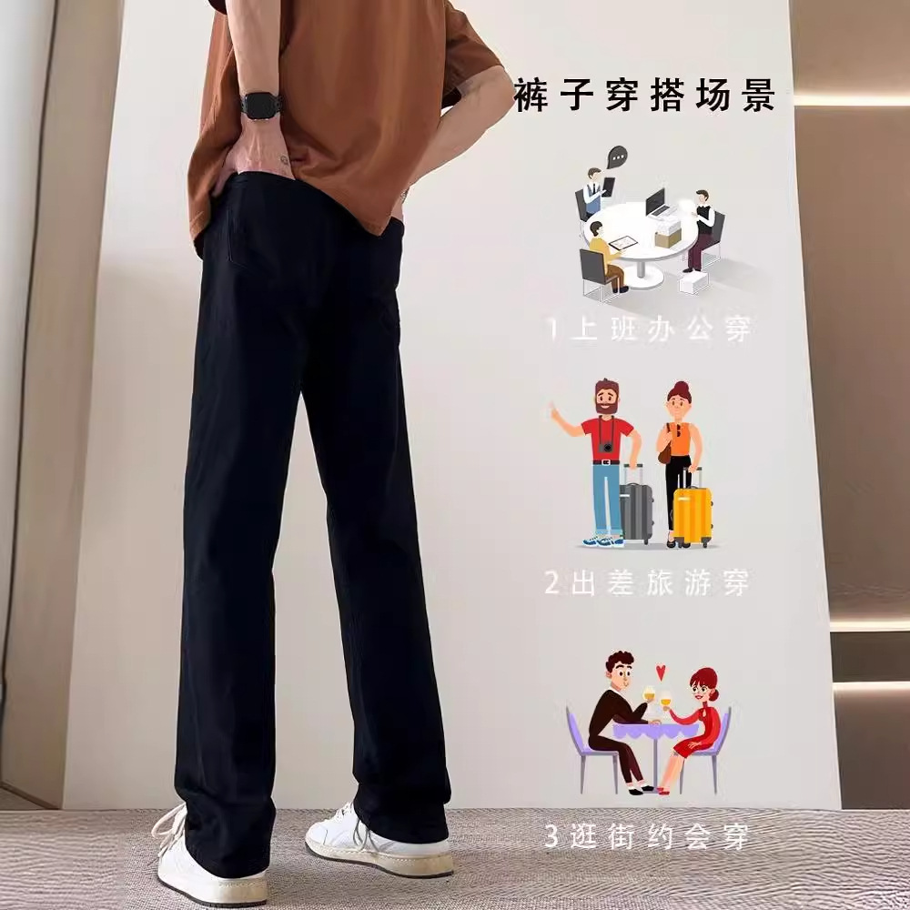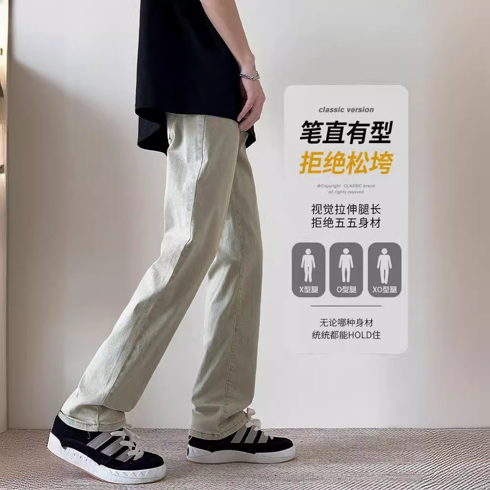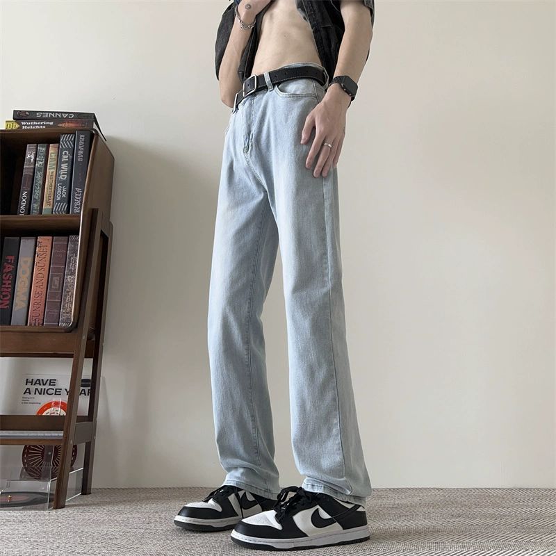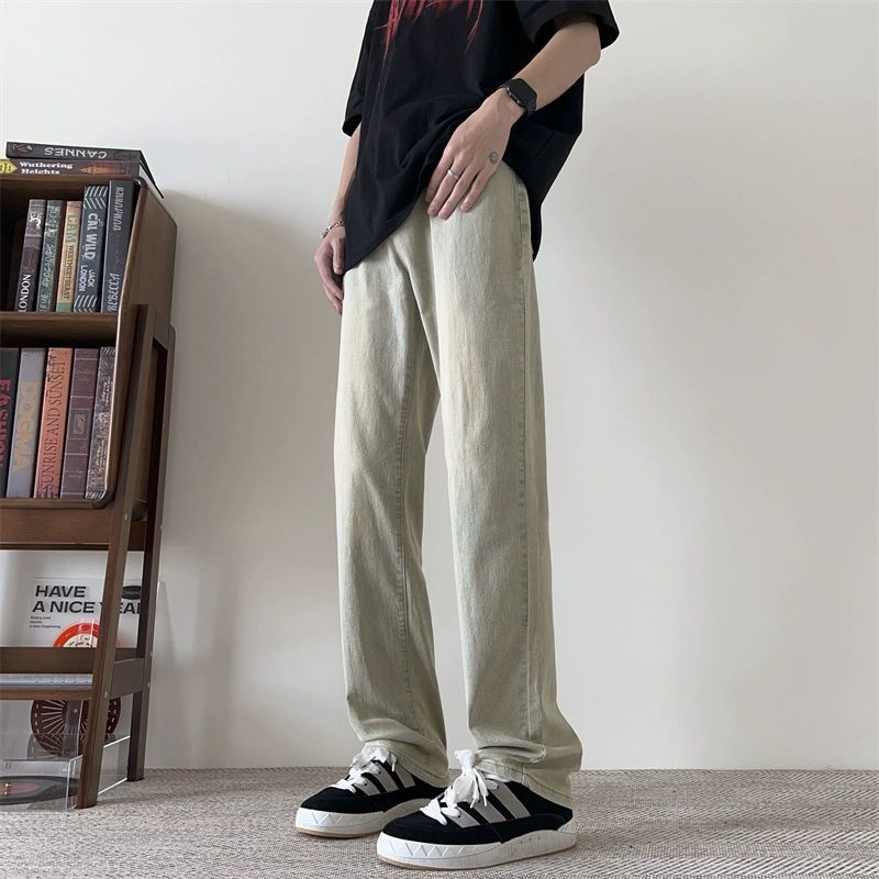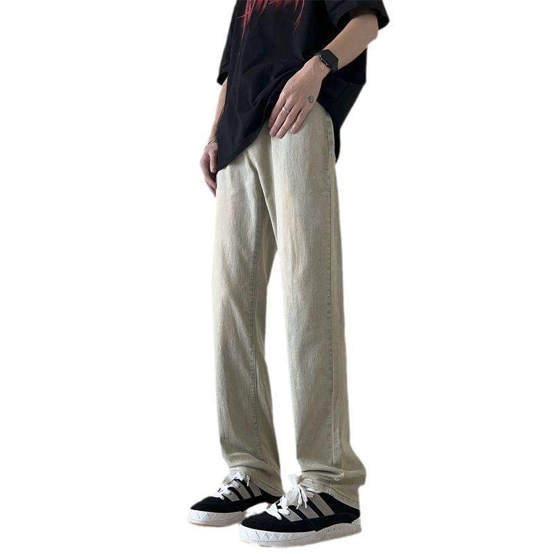 水洗美式高街牛仔裤男士夏季新款复古浅色潮牌直筒微喇长裤子