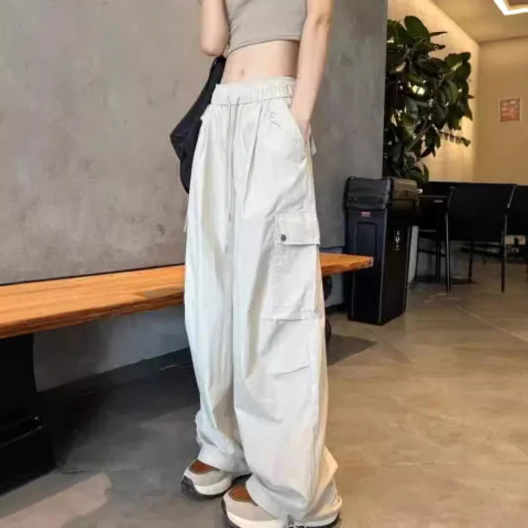 美式工装裤女夏季薄款小个子粉色束脚运动裤高腰休闲直筒多袋裤子