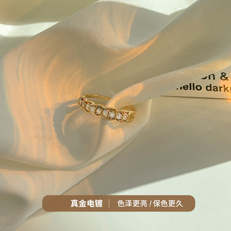 轻奢精致小众开口戒指女时尚个性锆石微镶素圈食指戒高级感指环夏