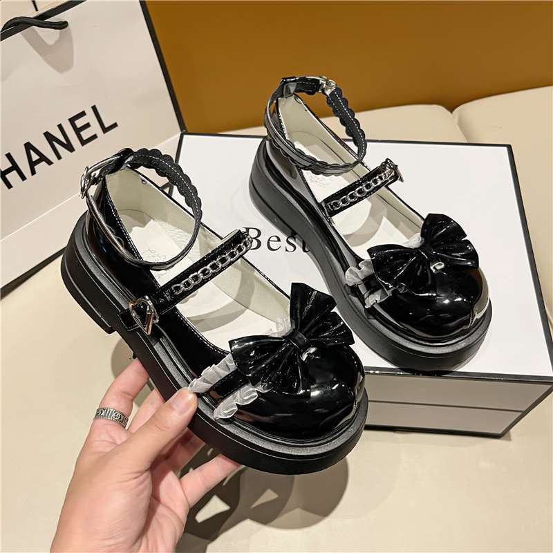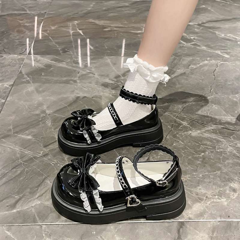 小皮鞋女日系圆头蝴蝶结可爱厚底