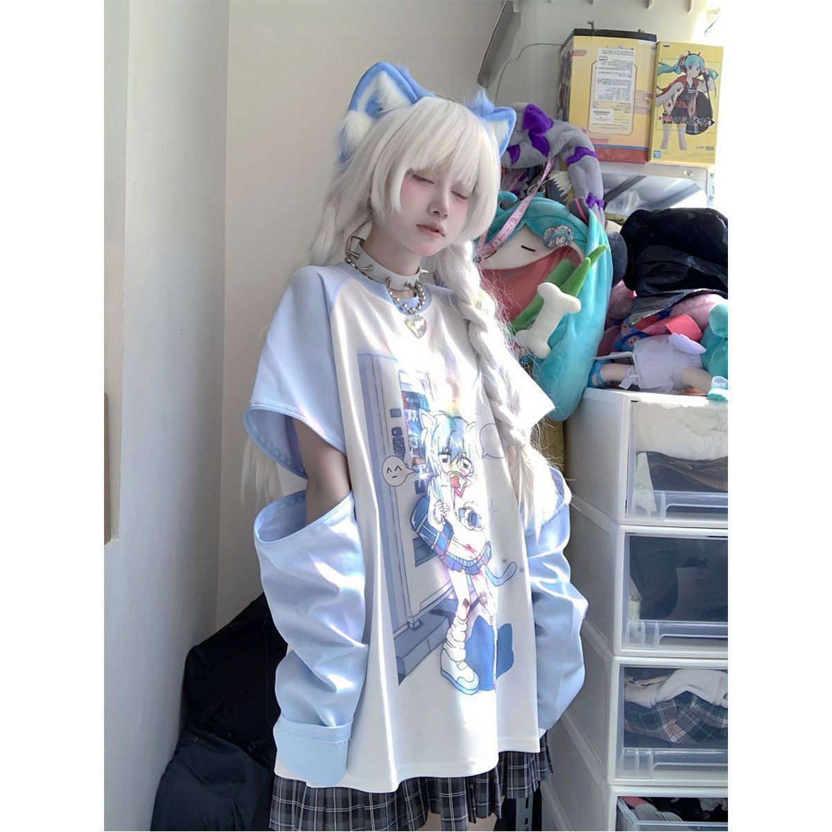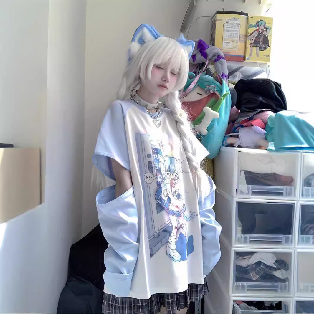 亚文化可拆卸两穿长短袖t恤女春夏季