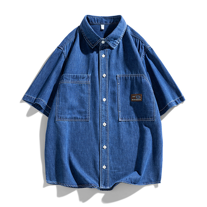 夏季新款短袖衬衣复古水洗牛仔衬衫时尚潮流百搭牛仔衬衫