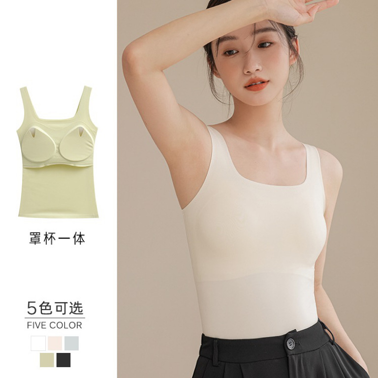 长款外穿打底背心带胸垫一体式宽肩带无痕内衣女内搭舒适冰丝美背