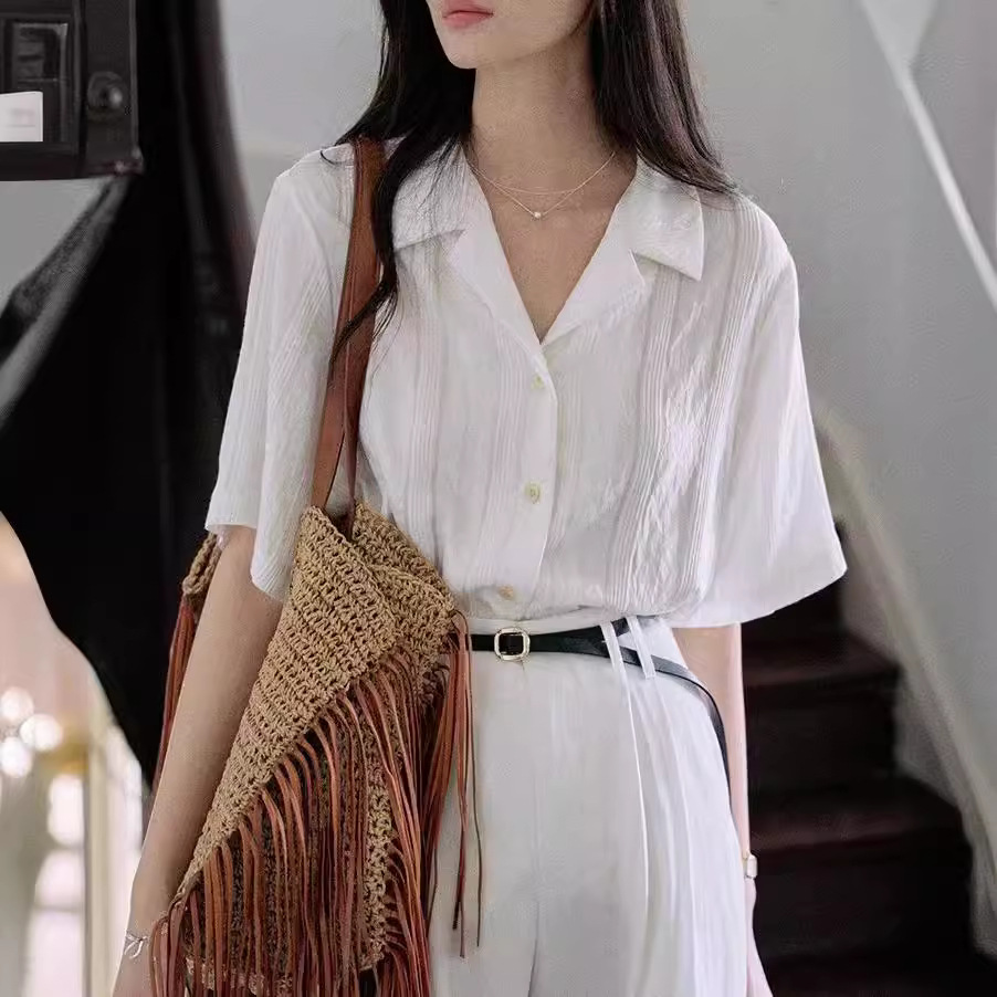 Jicouture“南洋假日”宽松短袖古巴领衬衫女夏法式复古休闲上衣