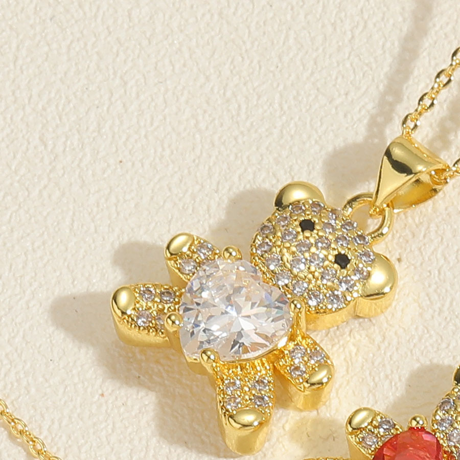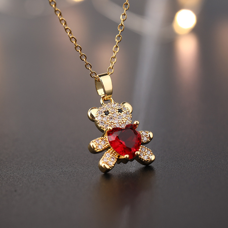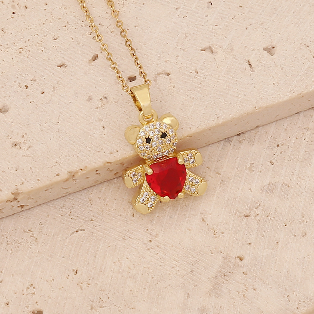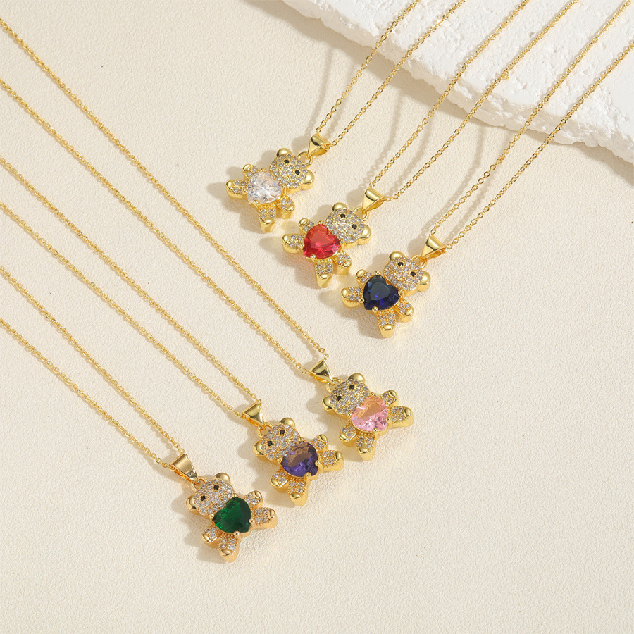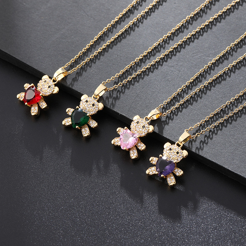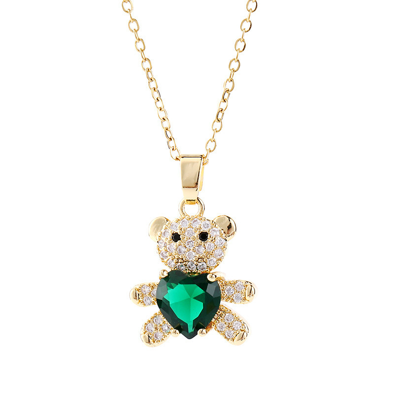 铜微镶锆石可爱小熊爱心宝石吊坠项链饰品
