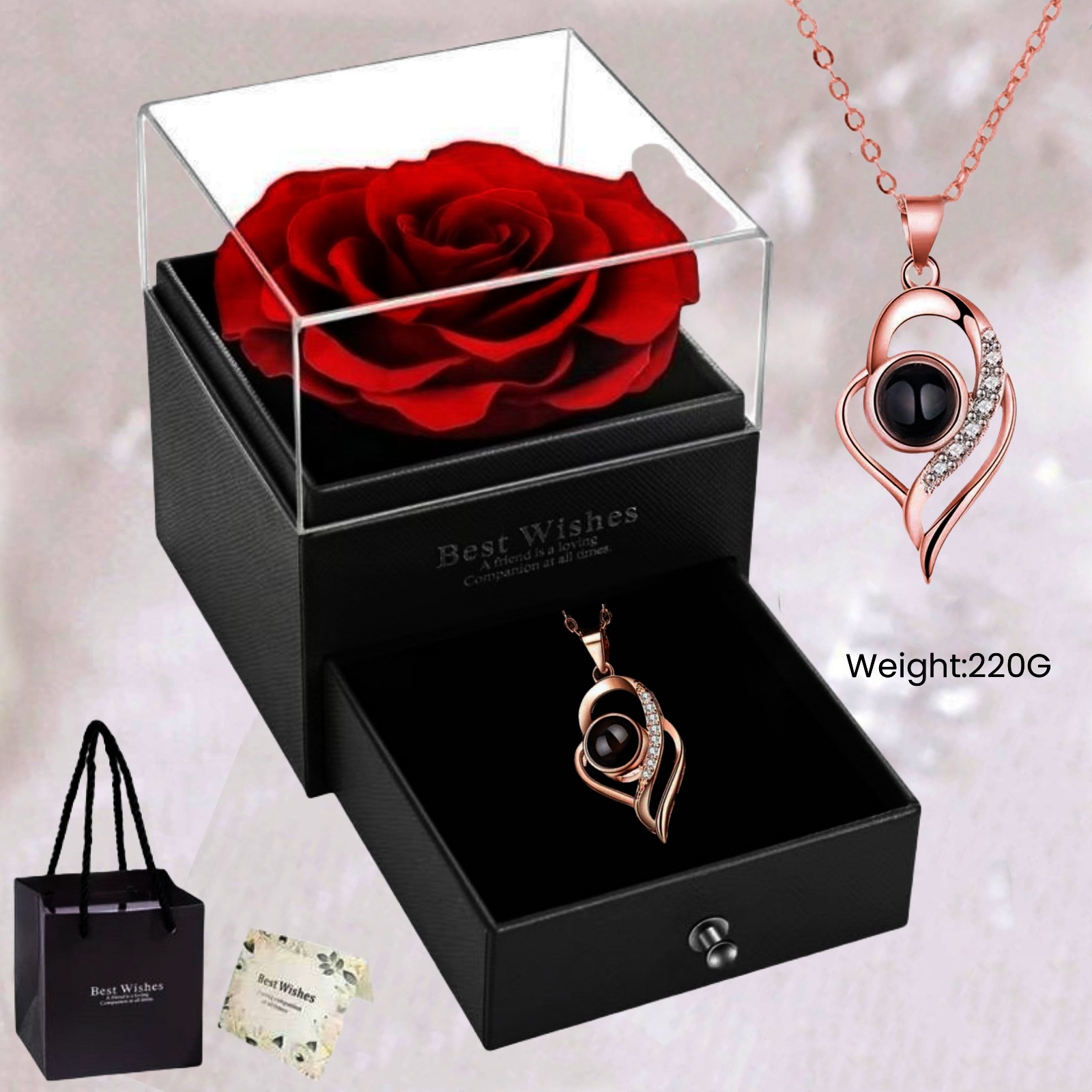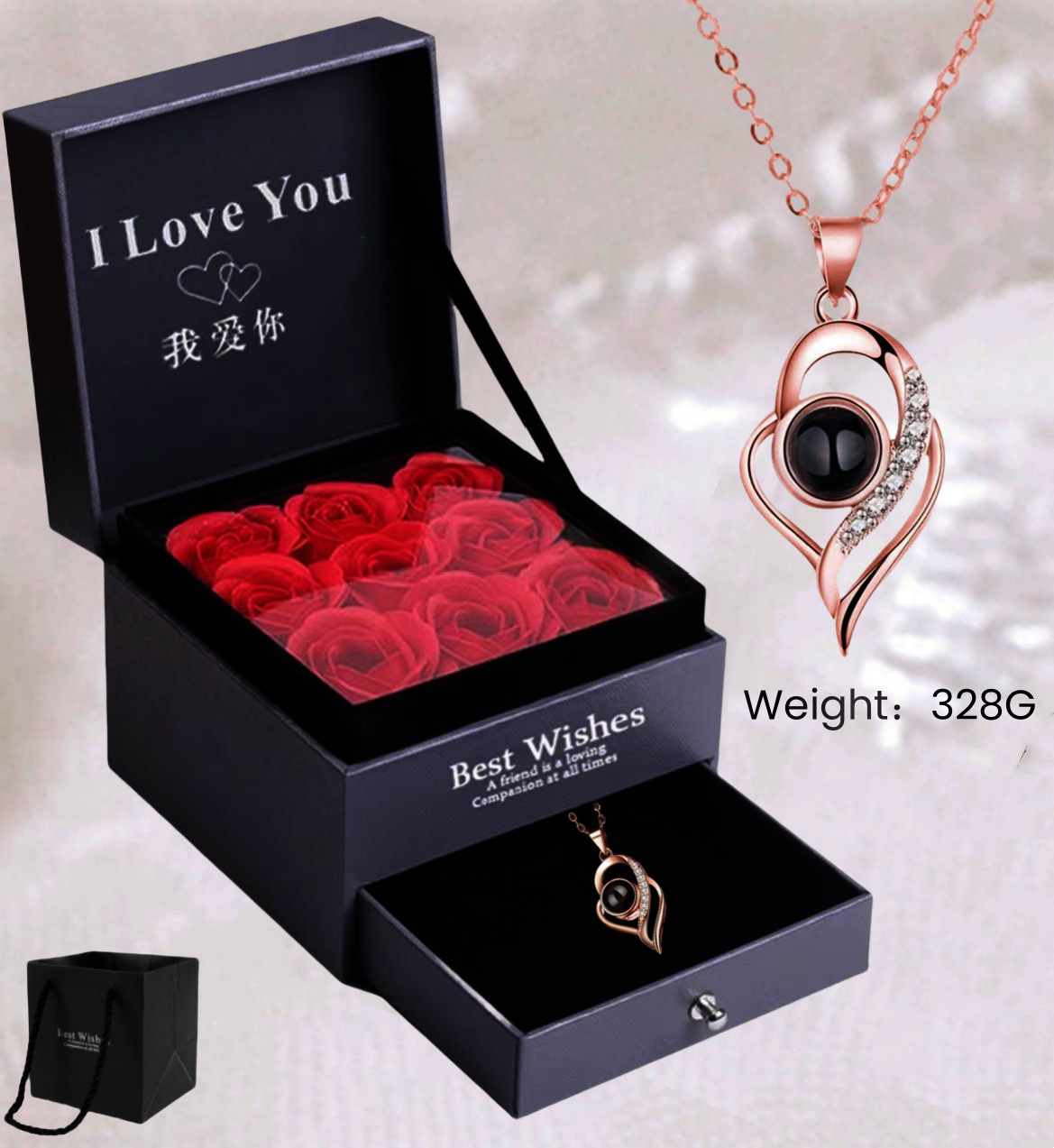 玫瑰金色柔美爱心语言项链+9朵玫瑰礼盒