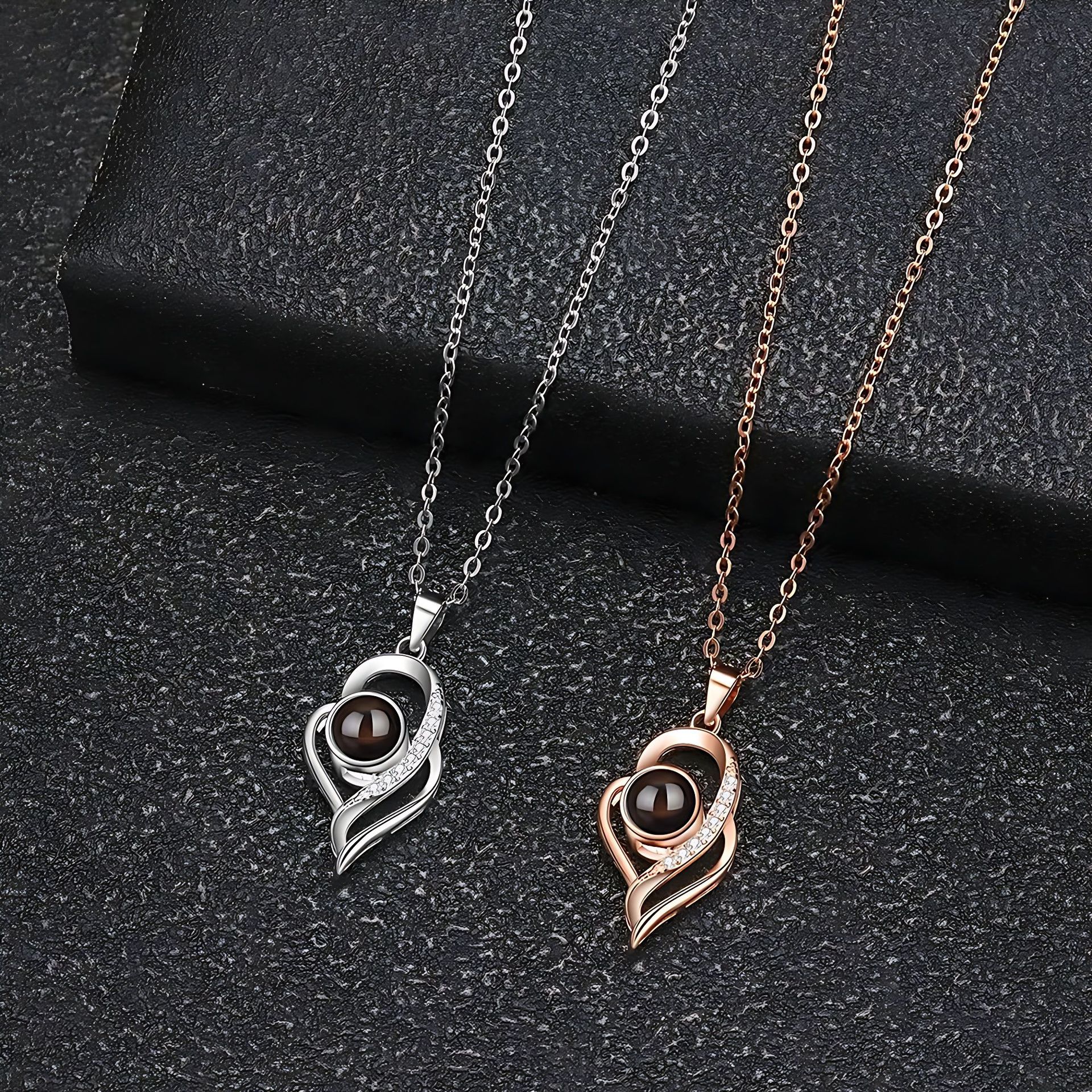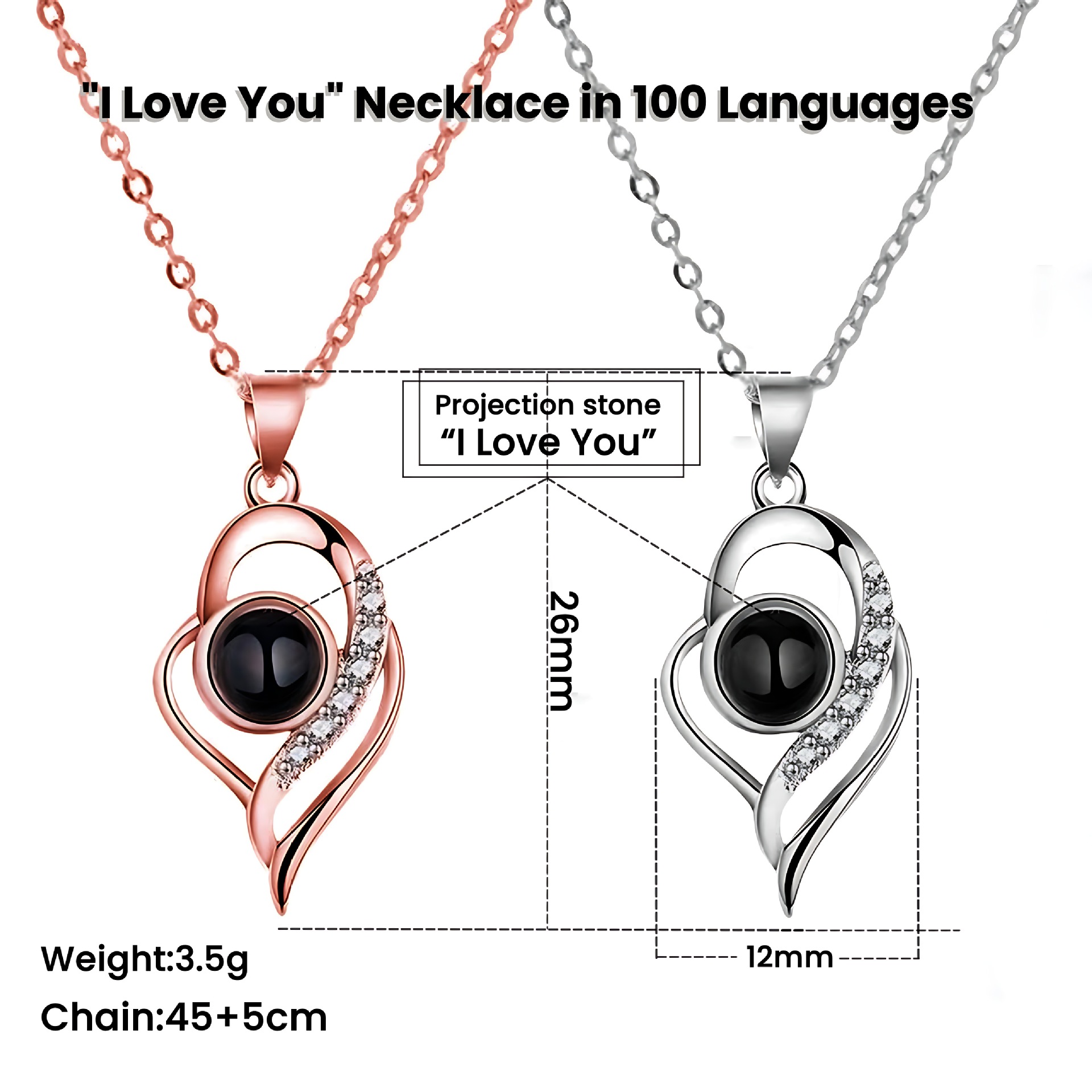 玫瑰金色柔美爱心语言项链+翻盖礼盒