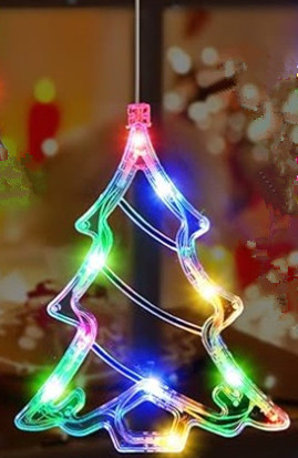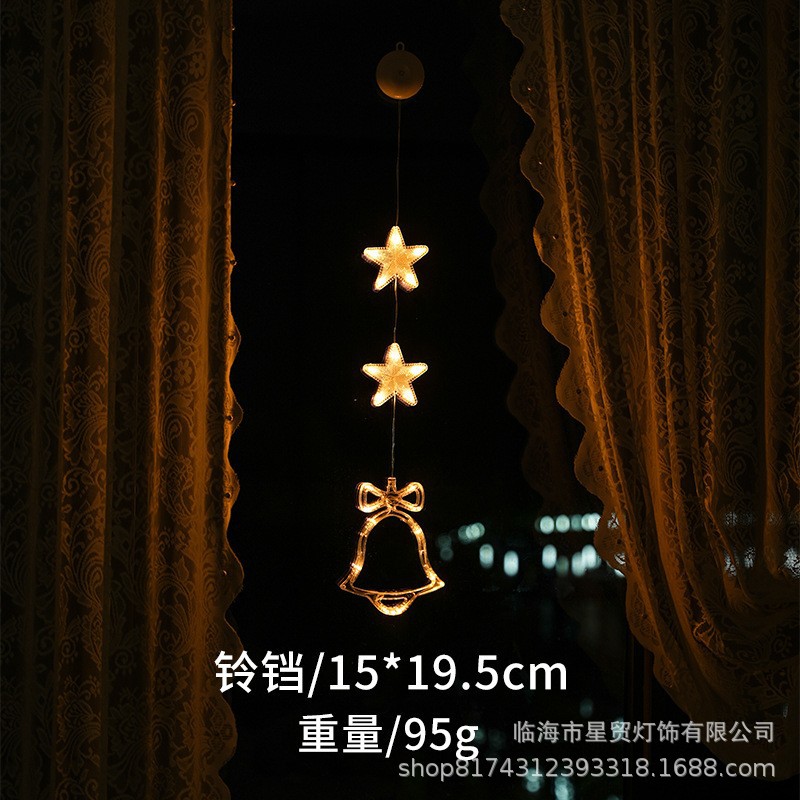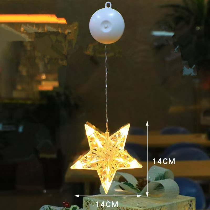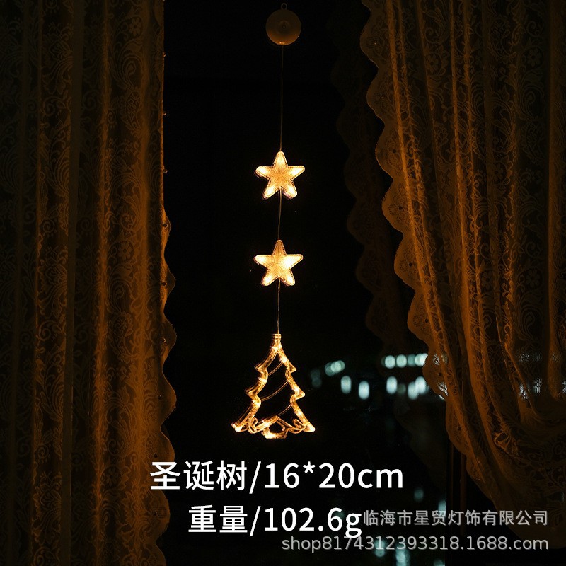 圣诞节装饰吸盘灯雪人圣诞树五角星窗帘电池灯节日小彩灯