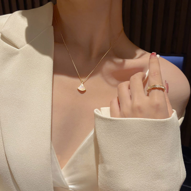 气质猫眼石设计感扇形裙子钛钢项链女百搭