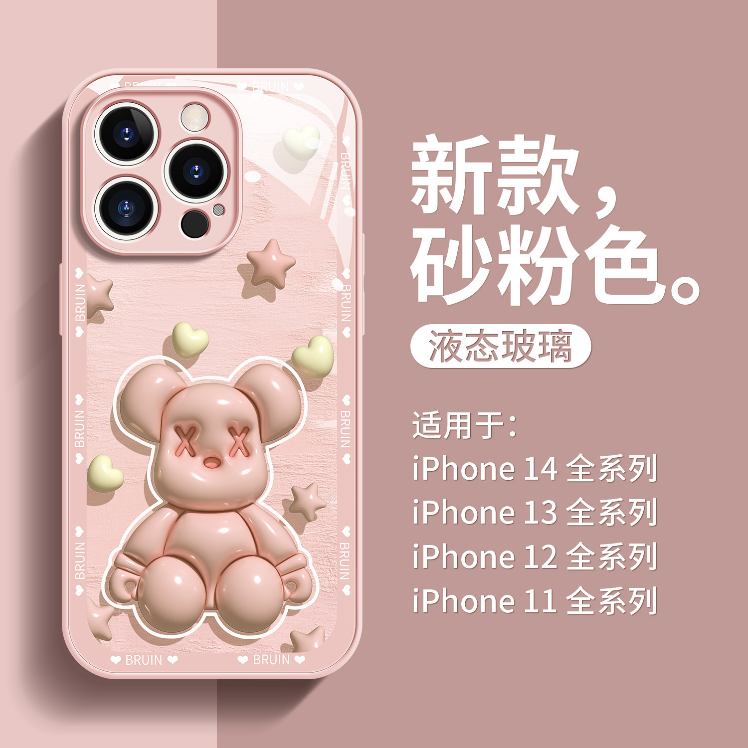 适用女款暴力熊苹果13po手机壳新款iphone14网红潮牌kws联名12