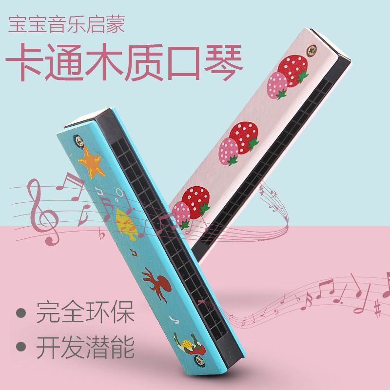 儿童木质小口琴创意音乐幼儿园小学生初学吹奏乐器16孔口风琴