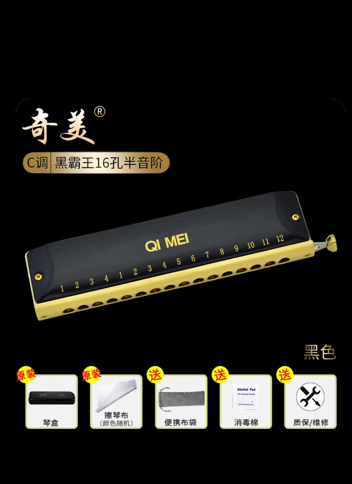 奇美12孔圆吹口半音阶口琴(黑色)+布袋