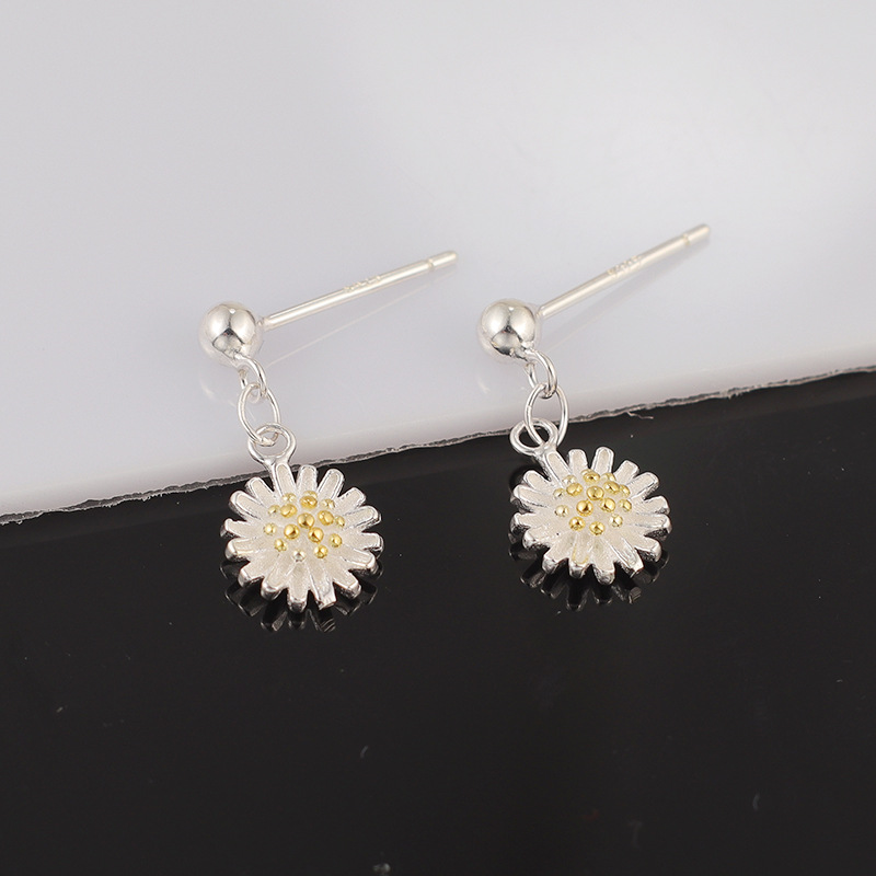 s925纯银小香风耳钉女 小雏菊简约小清新耳环花朵耳坠耳饰品