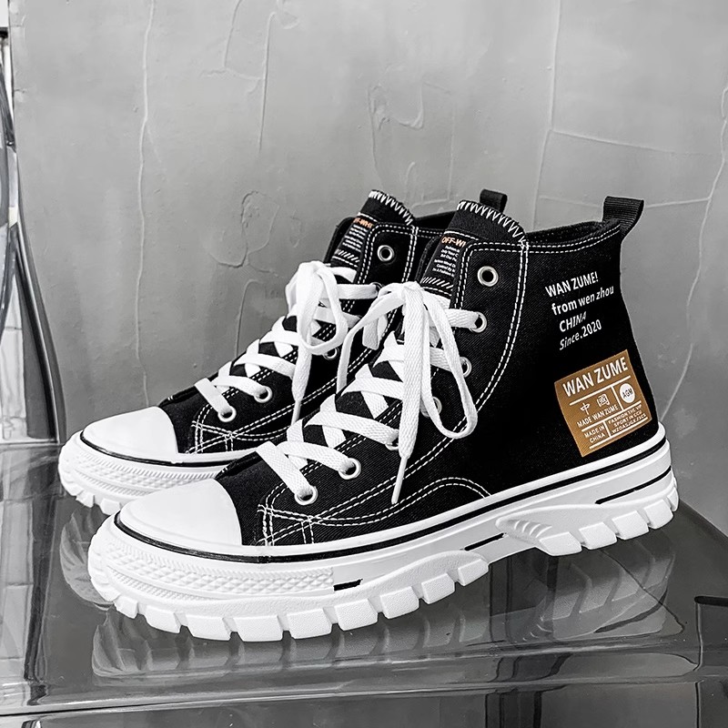 高帮帆布男鞋秋季潮流增高板鞋学生布鞋运动休闲男士百搭黑色潮鞋