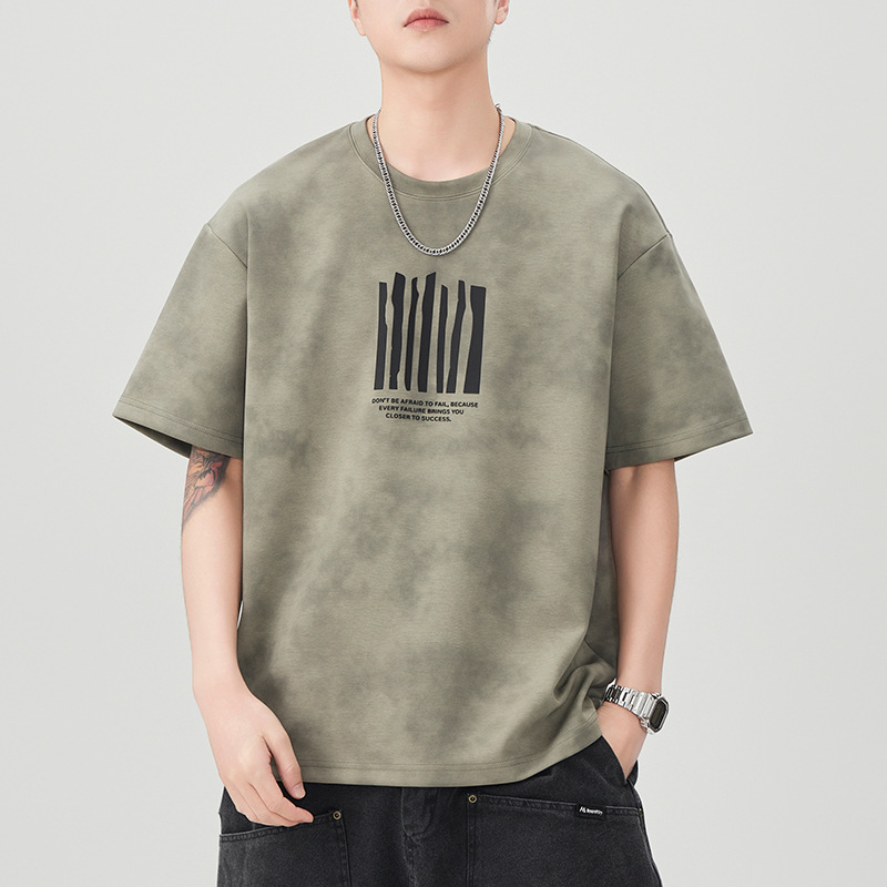 2025新款夏季扎染短袖男士T恤简约潮流美式休闲半袖上衣体恤男装