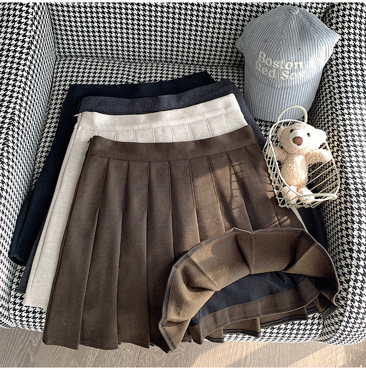 灰色百褶裙女新款秋冬韩版高腰a字显瘦jk短裙小个子毛呢半身裙女