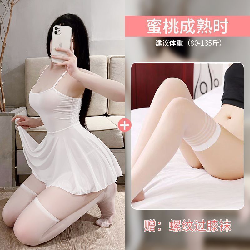 ❥❣白色冰丝吊带裙+新款螺纹丝袜❣❥
