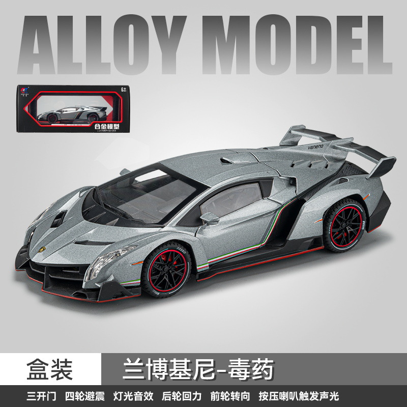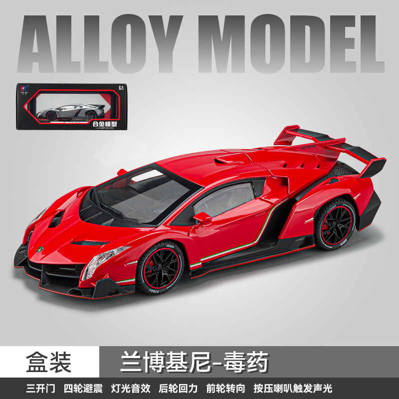 车致合金喷雾功能1:24兰博毒药车模回力玩具汽车声光模型摆件藏品