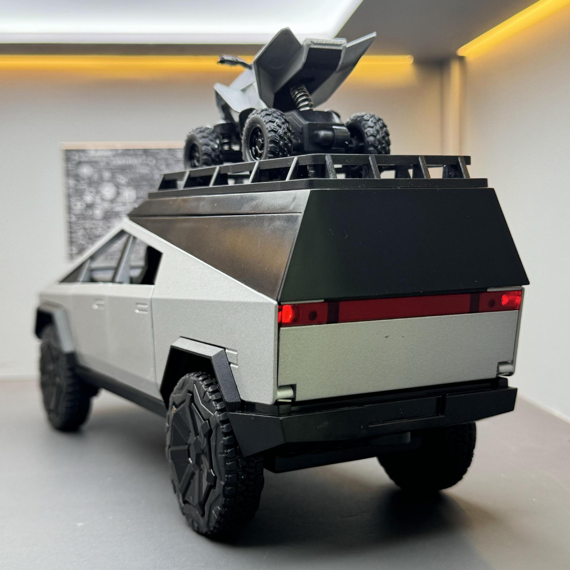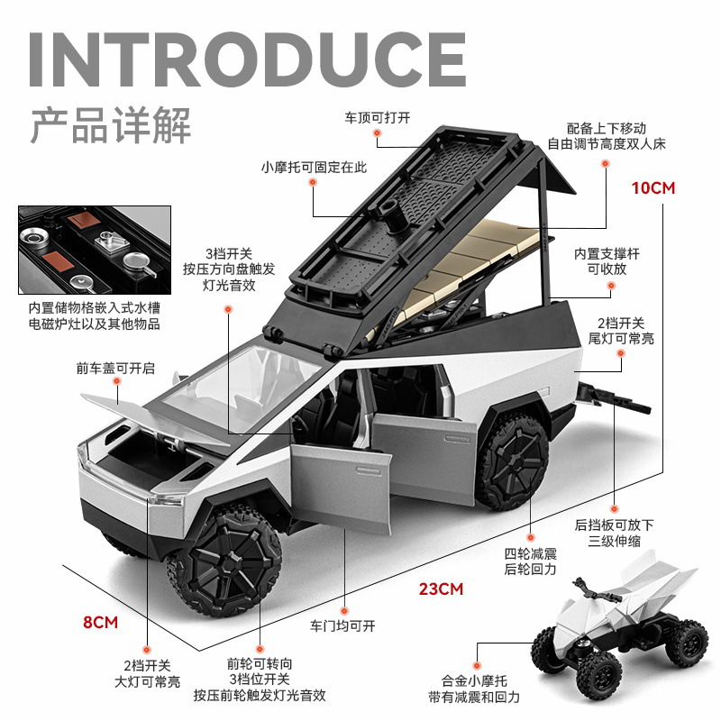 车致合金车模1:24特斯拉露营皮卡房车声光回力玩具车音乐模型摆件
