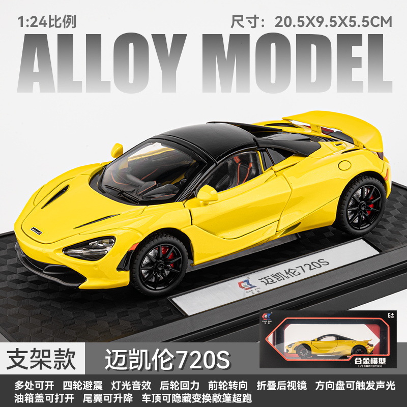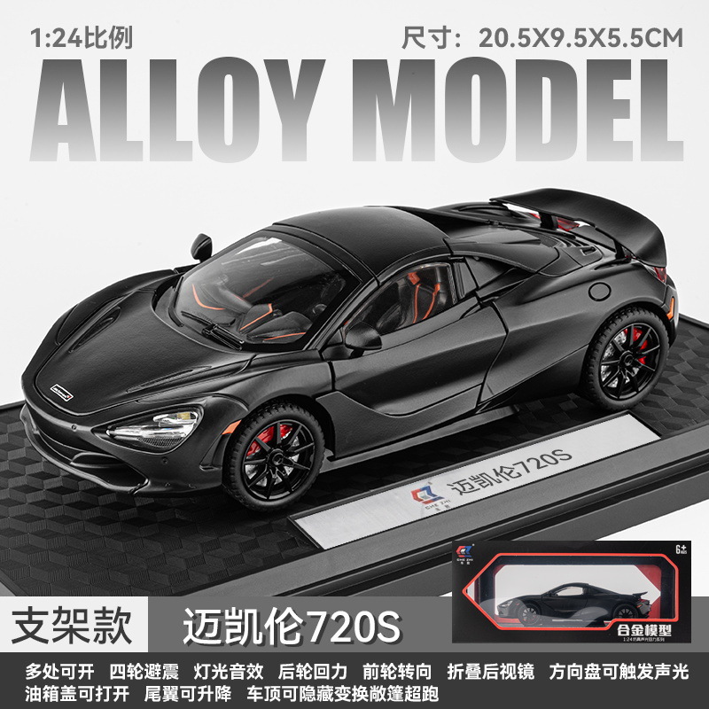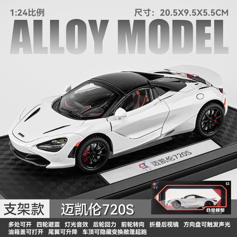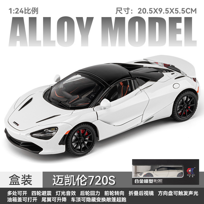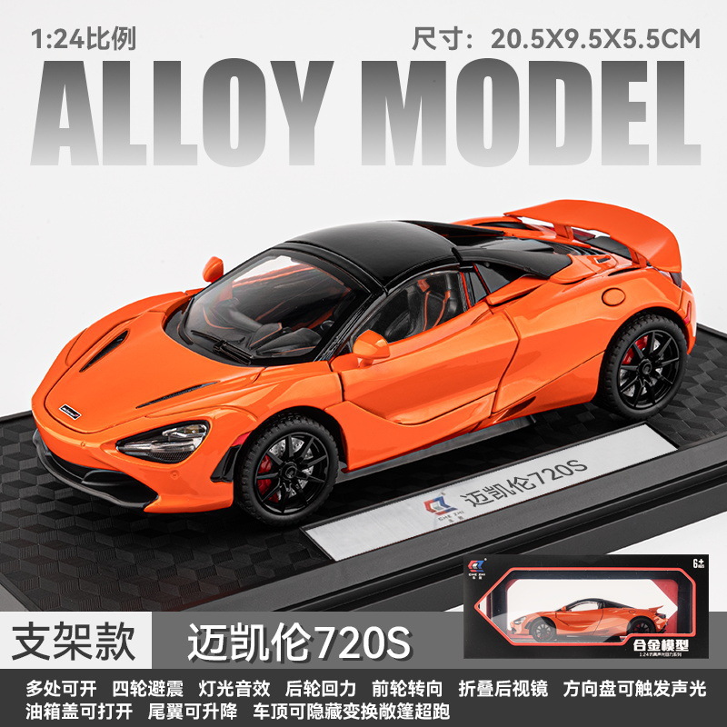 车致合金车模1:24迈凯伦720S跑车声光回力玩具车音乐模型摆件