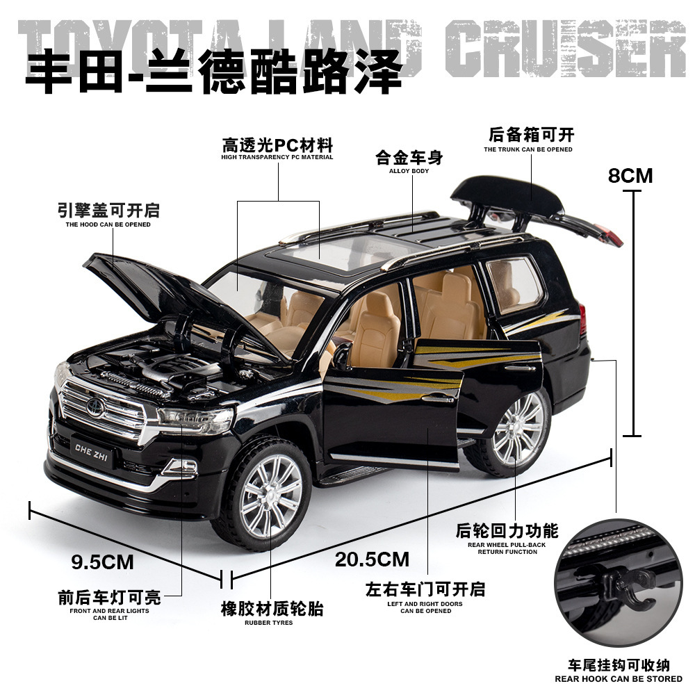 车致合金车模1:24兰德酷路泽越野车声光具电池车音乐模型摆件收藏
