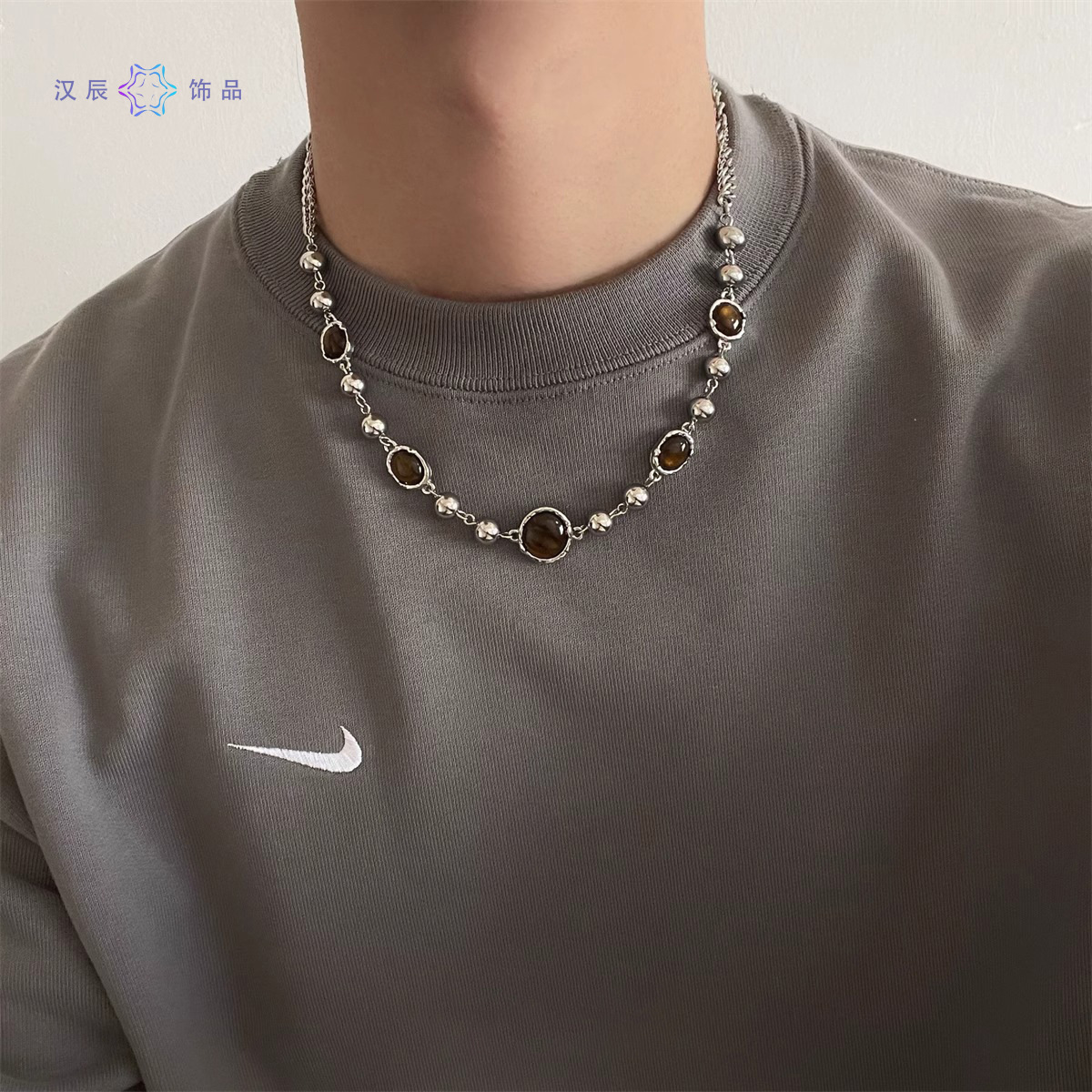 虎眼石拼接项链男简约时尚新款潮流饰品女高级感嘻哈配饰品
