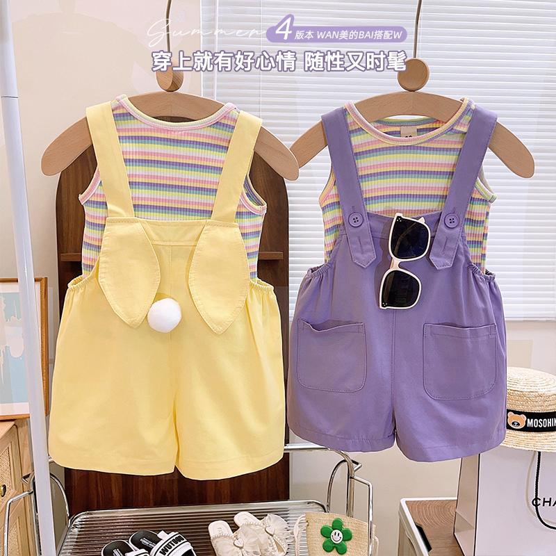 新品女童背带裤套装夏季2025新款时髦女宝宝背带裤可爱两件套