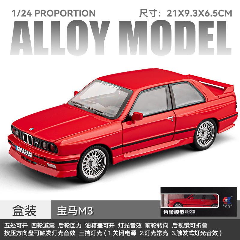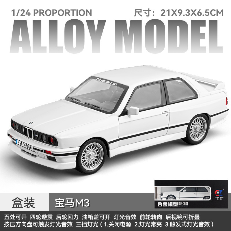 车致合金车模1:24保马M3复古跑车声光回力玩具车音效模型摆件