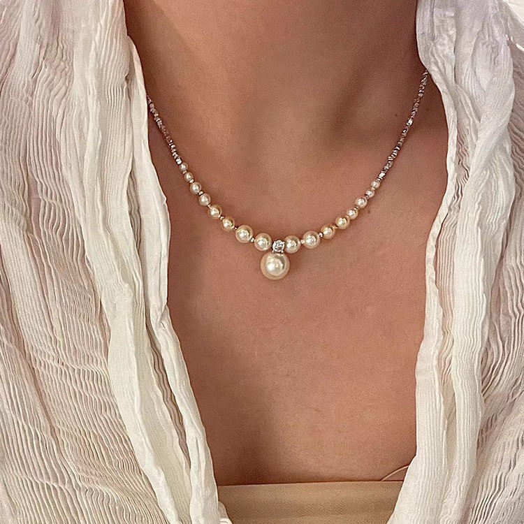 高级感碎银子金属珍珠项链女法式复古个性简约百搭气质颈链锁骨链